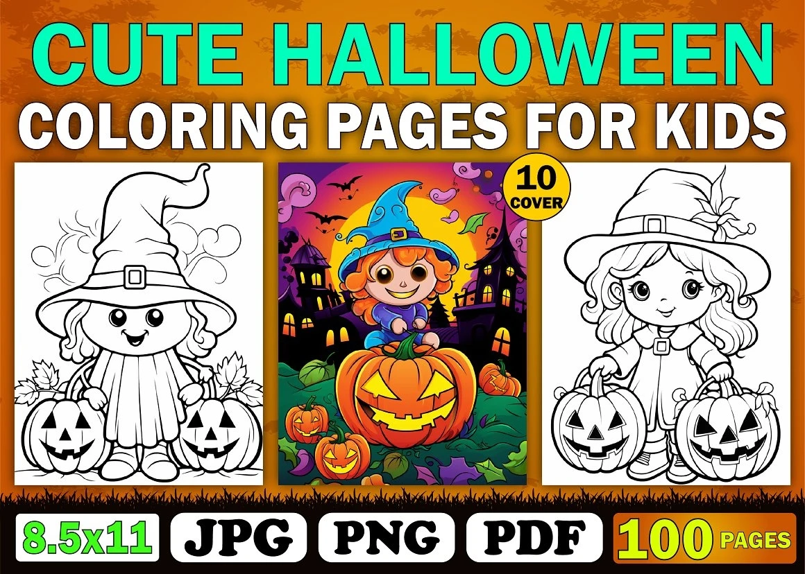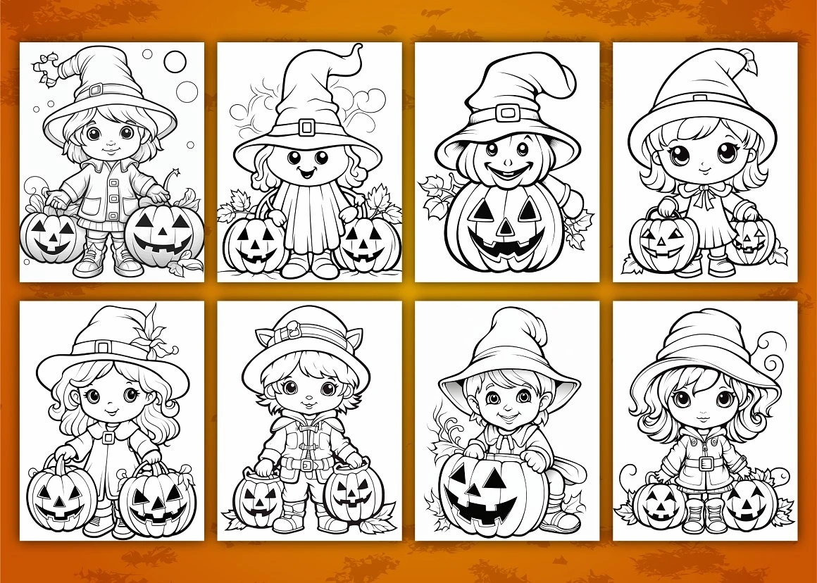 Coloring Pages, Cats, Grinning Pumpkins, Ghost, Cute Halloween And Much More...