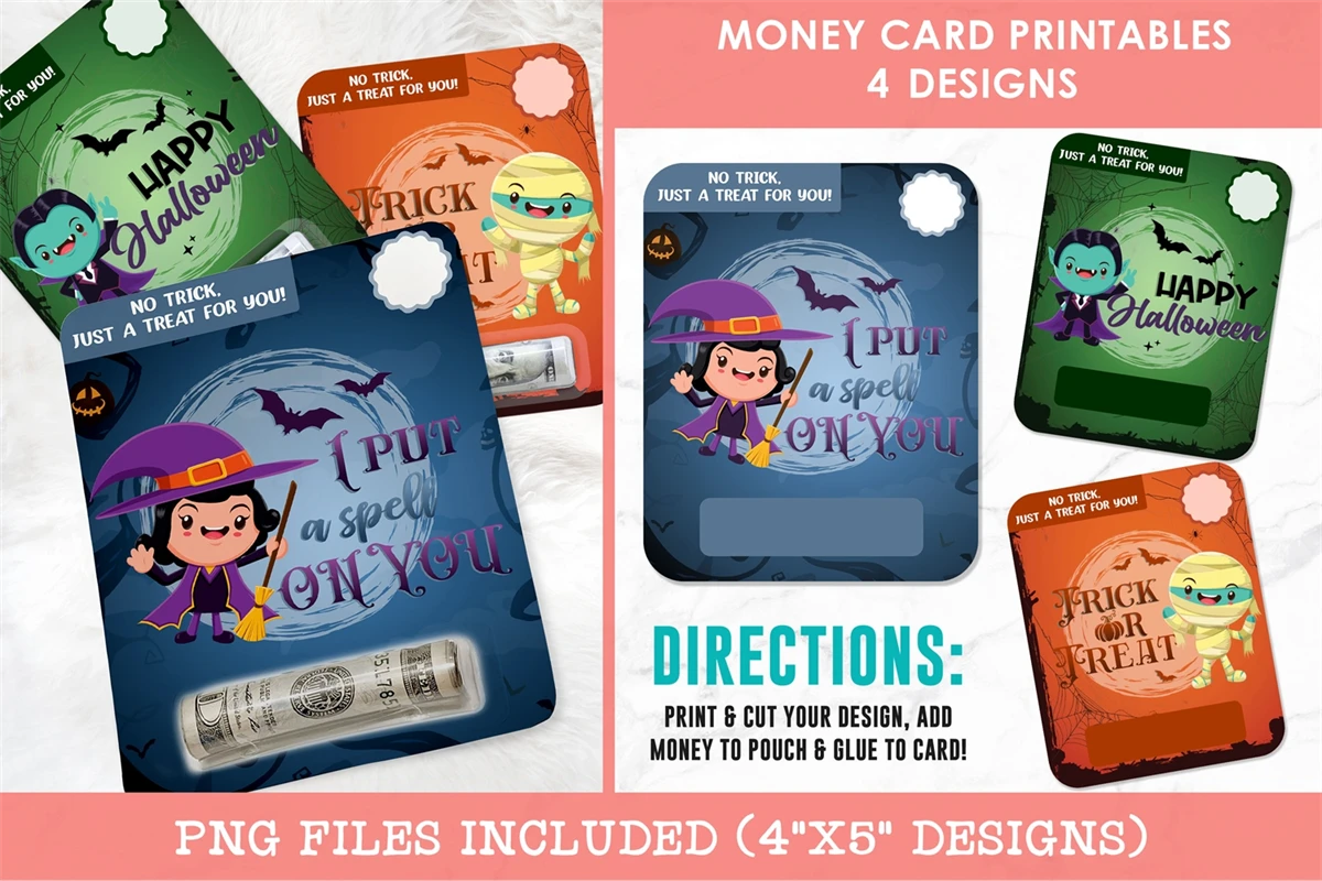 Cute Halloween Printable Money Card Holders, Happy Halloween