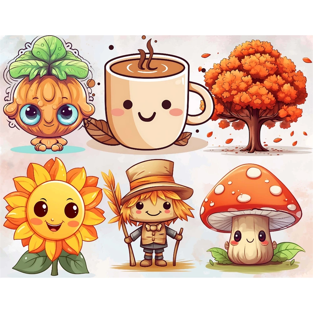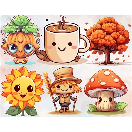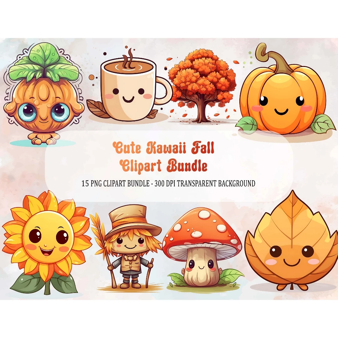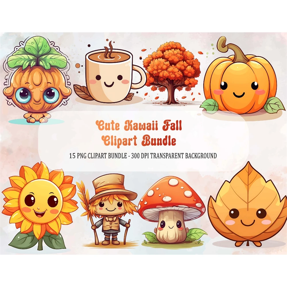 Cute Kawaii Fall Clipart Bundle - 15 PNGs of Coffee
