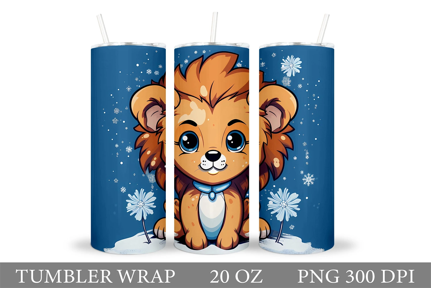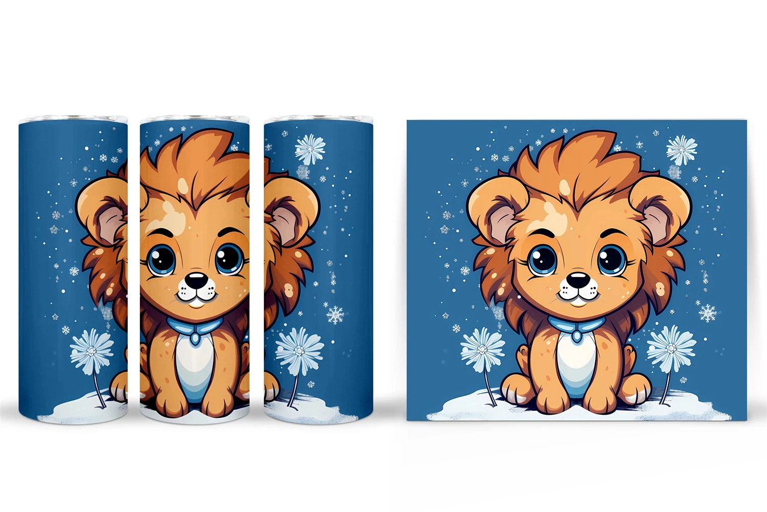 Cute Lion Tumbler Sublimation. Winter Lion Tumbler Design