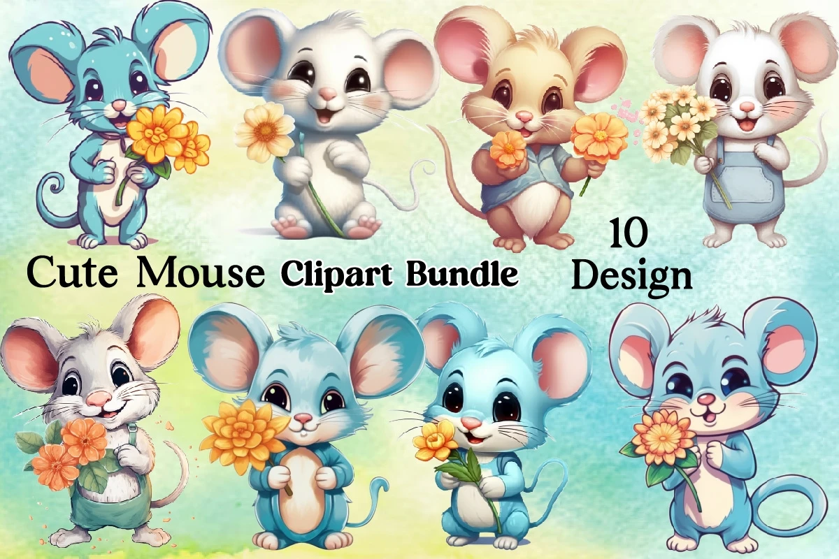 Watercolor Cute Mouse Clipart PNG Bundle