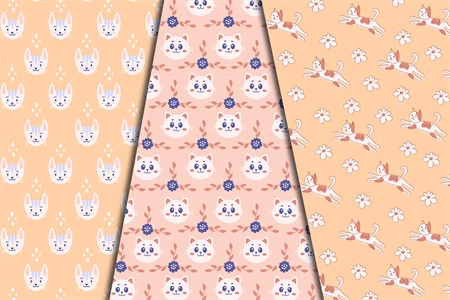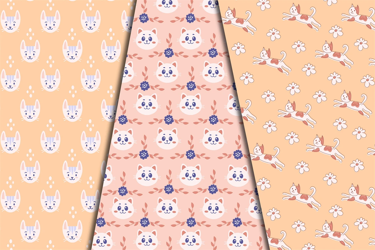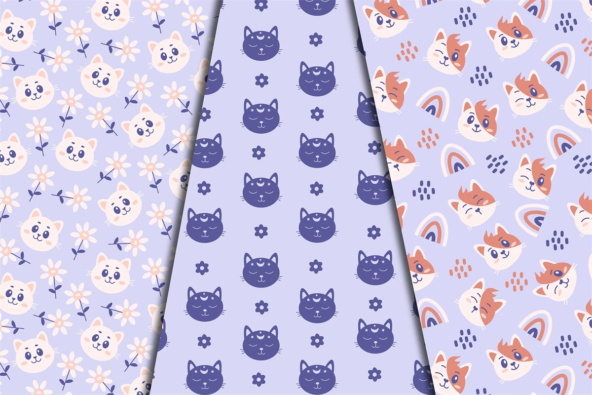 Cute Pastel Cats collection includes 6 pretty animal digital papers and seamless patterns with adorable kittens and flowers. Soft gentle colors are perfect for baby, kids, children, textile, fabric, greeting cards, scrapbooking, pets accessory, gift, wallpaper, decoration etc.