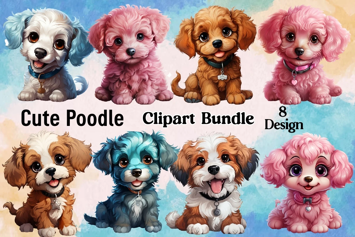 Watercolor Cute Poodle Sublimation Design Bundle