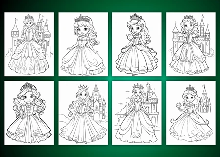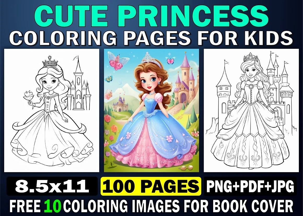 Cute Princess Coloring Page For Kids 1 : Word Searches, Color- By-Numbers, Puzzles, Count-and-Color,