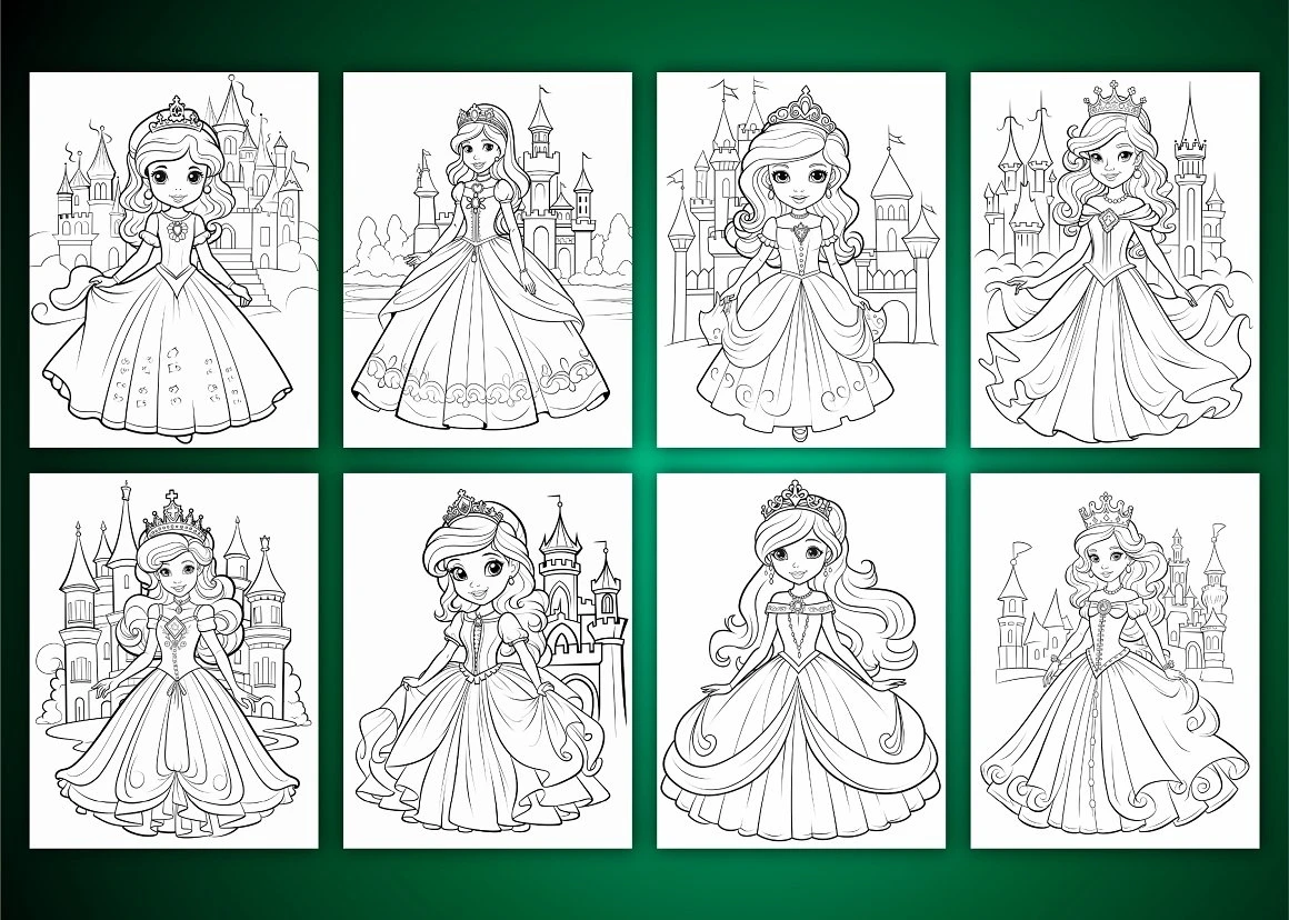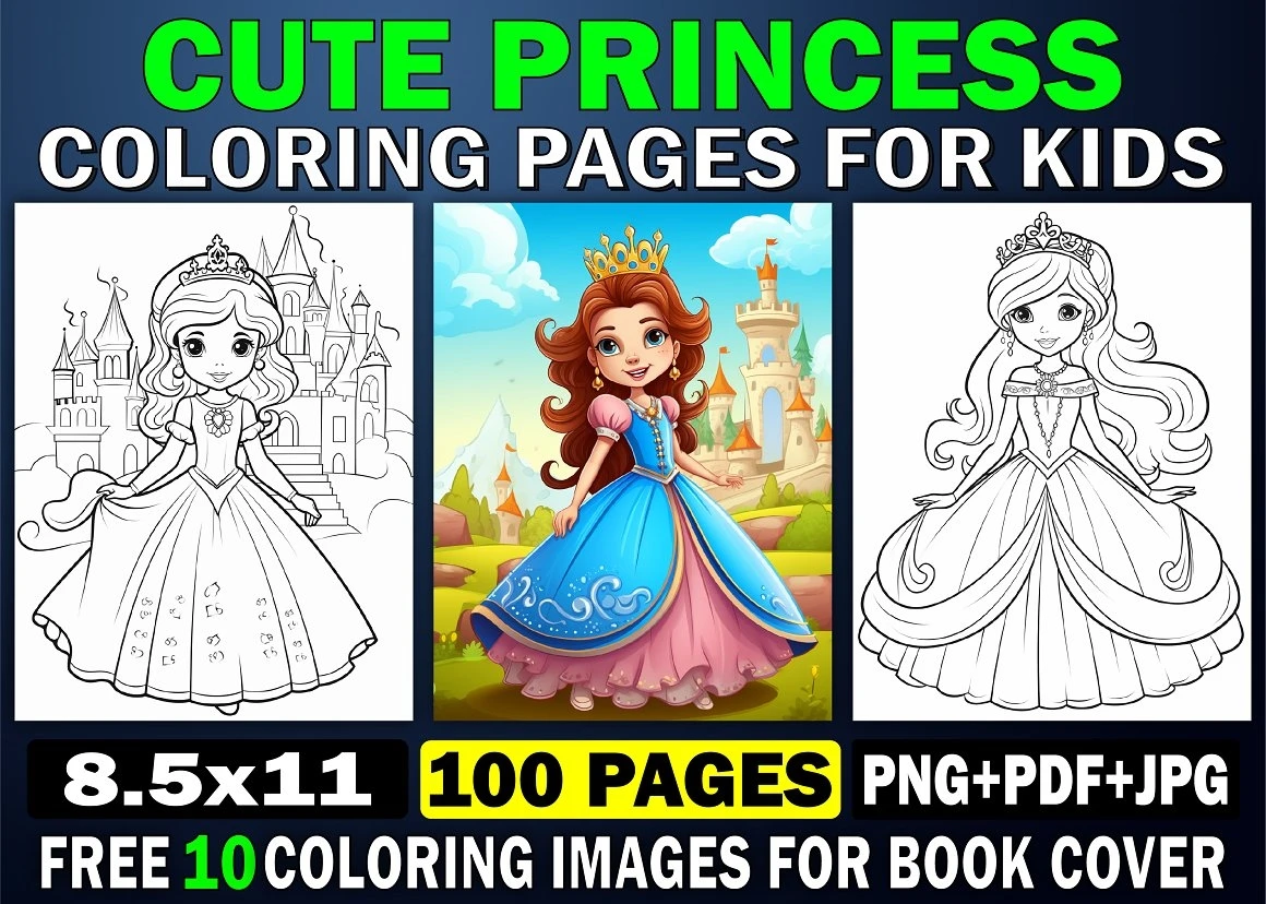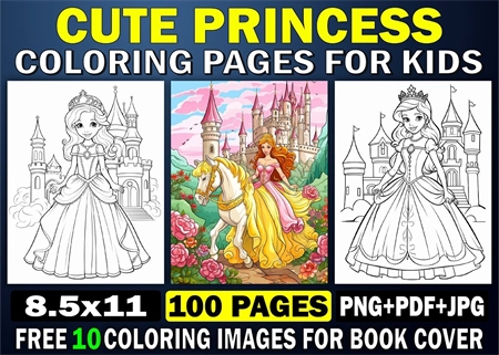 Cute Princess Coloring Page For Kids 3 : Word Searches, Color- By-Numbers, Puzzles, Count-and-Color,