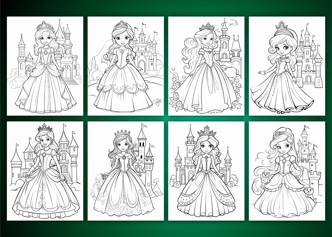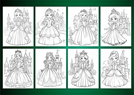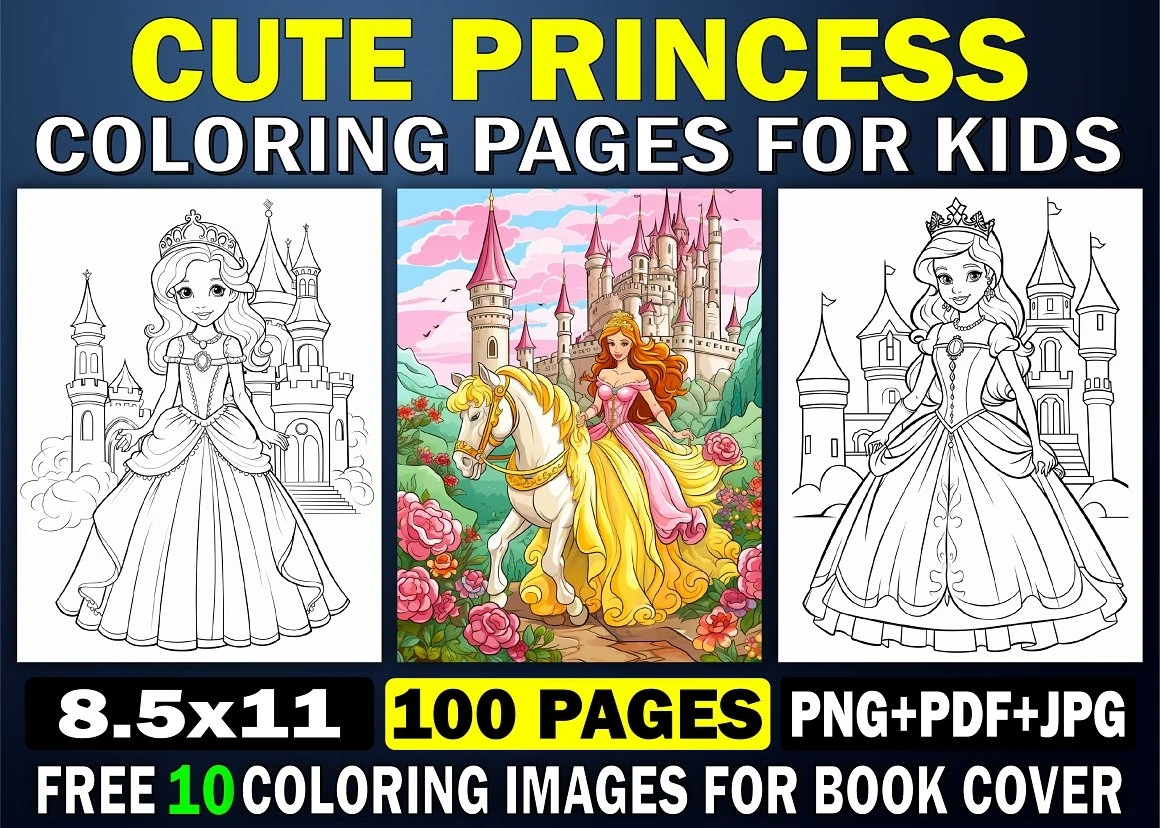 Cute Princess Coloring Page For Kids 4 : Word Searches, Color- By-Numbers, Puzzles, Count-and-Color,