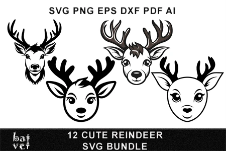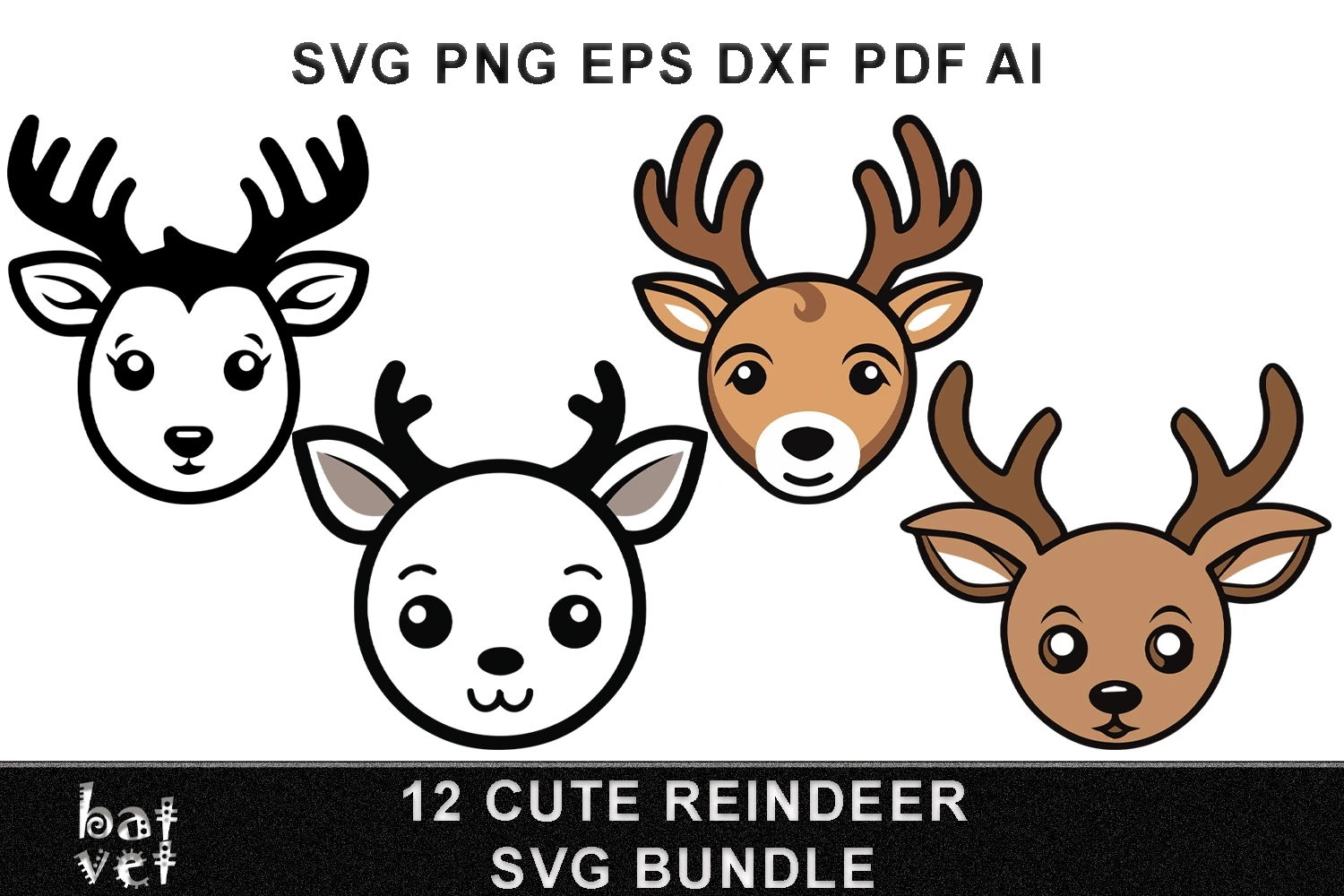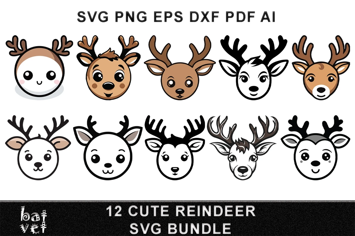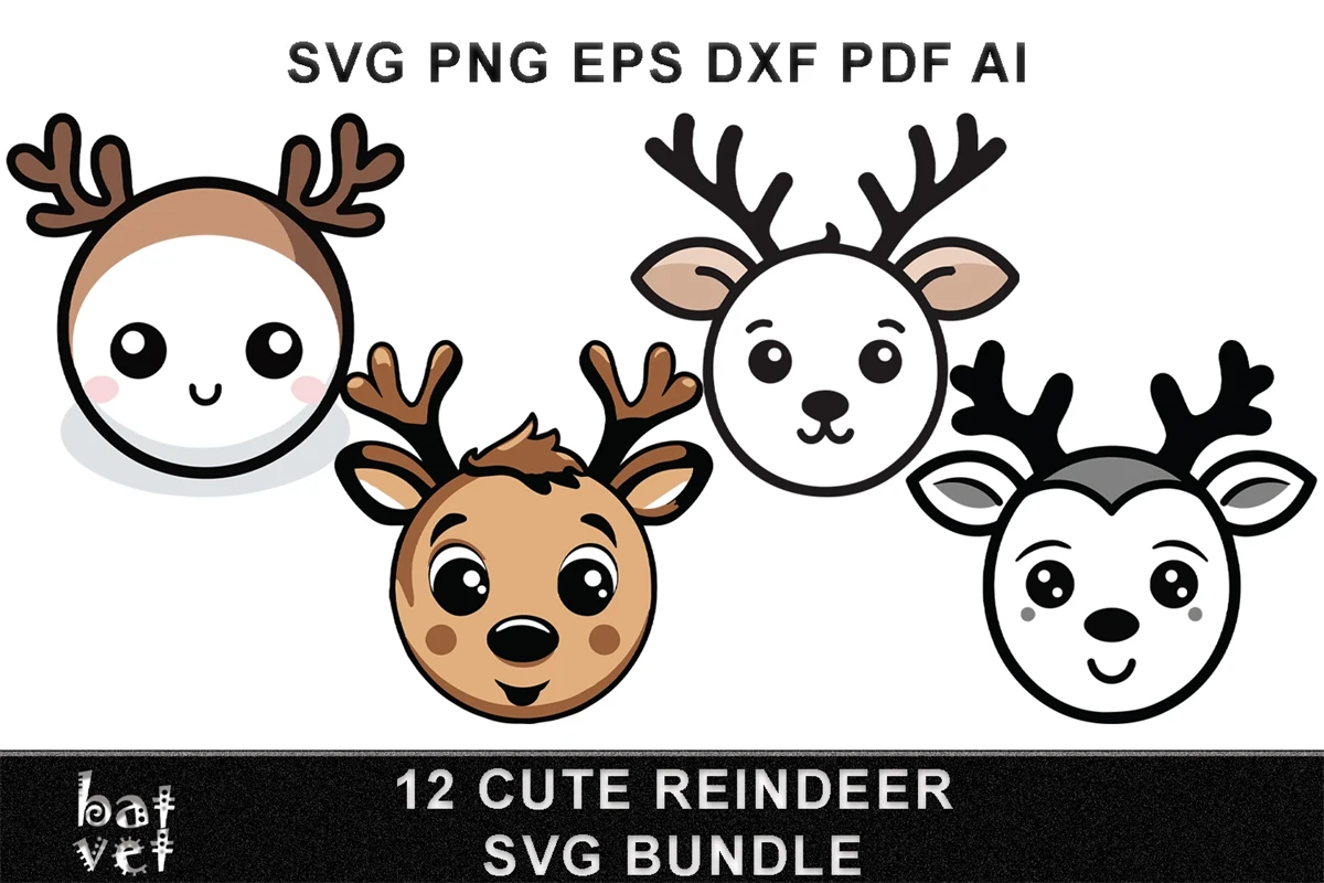 Cute Reindeer PNG / Reindeer SVG Files / 12 Cutting Files