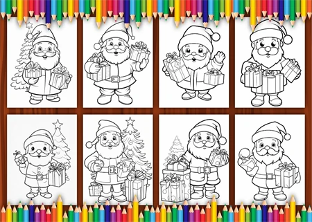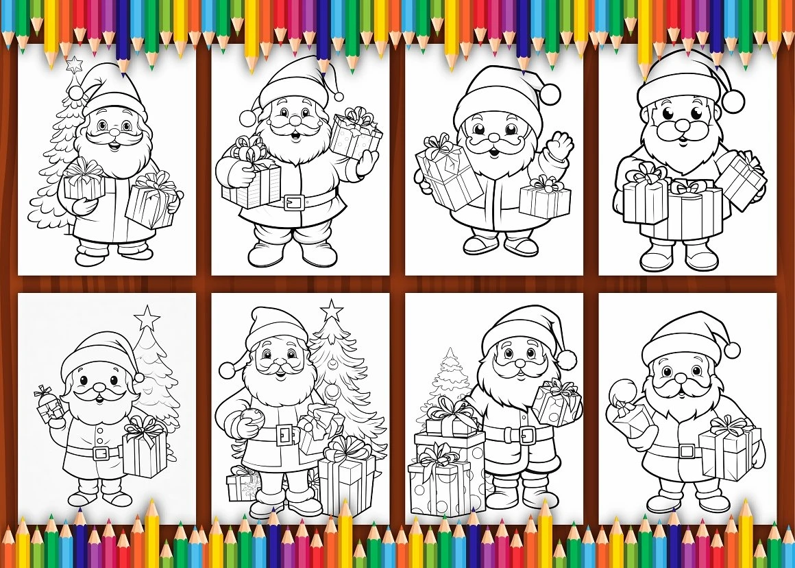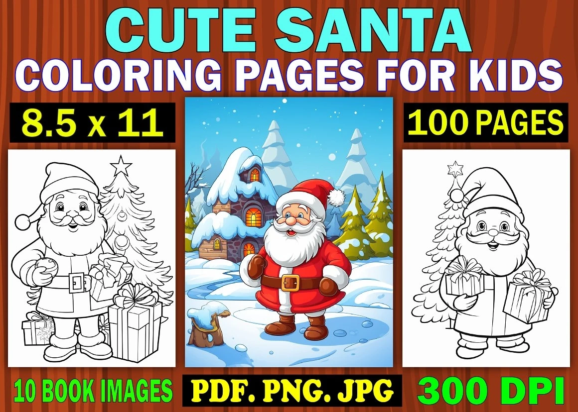 Cute Santa Coloring Pages for Kids 1 : Word Searches, Color- By-Numbers, Puzzles, Count-and-Color,