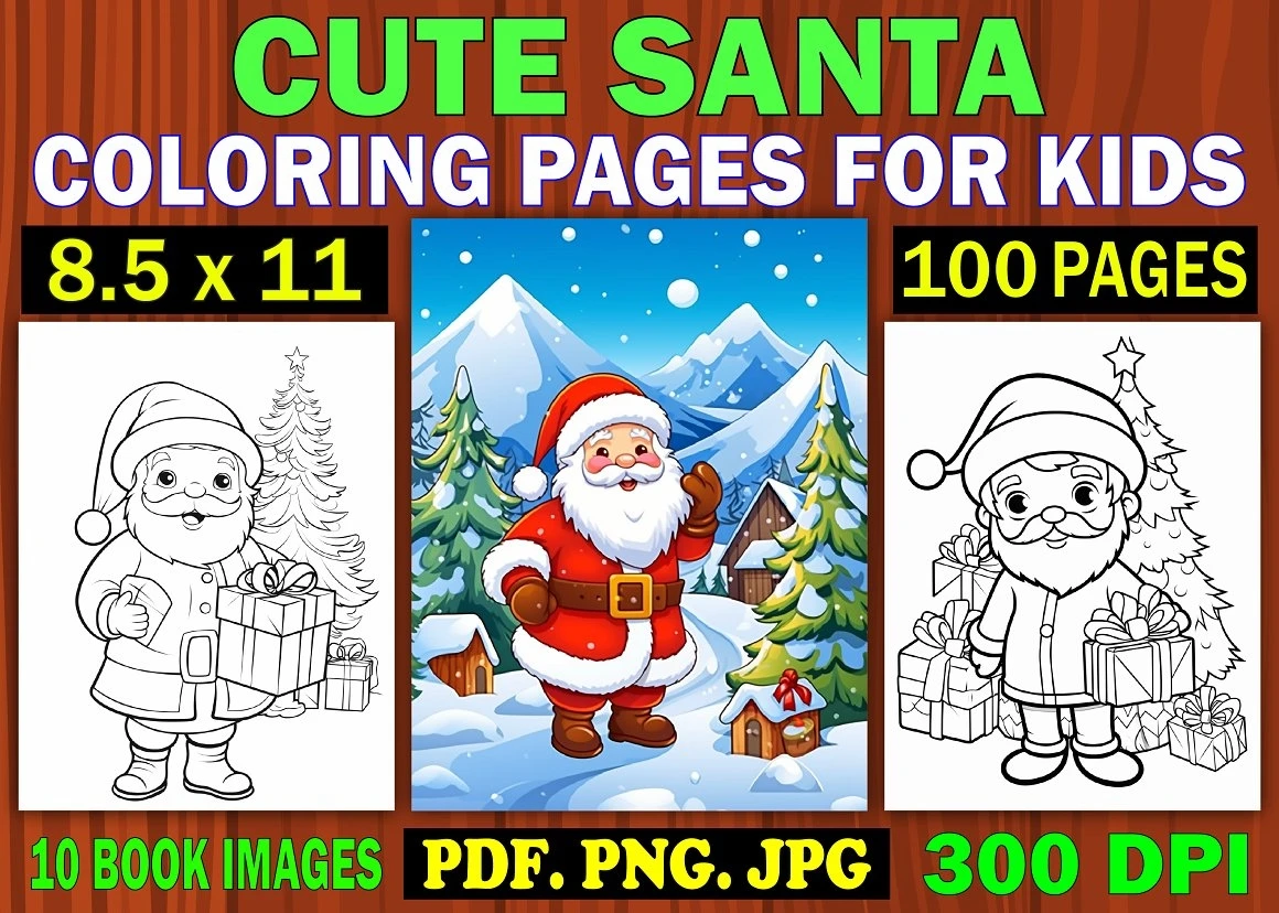 Cute Santa Coloring Pages for Kids 2 : Word Searches, Color- By-Numbers, Puzzles, Count-and-Color,