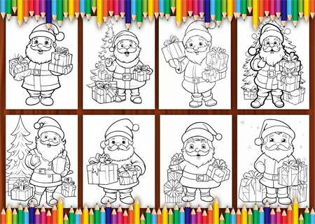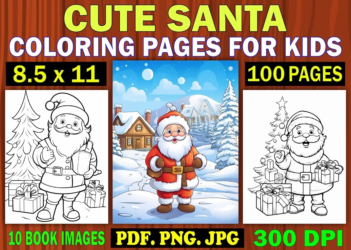 Cute Santa Coloring Pages for Kids 3 : Word Searches, Color- By-Numbers, Puzzles, Count-and-Color,