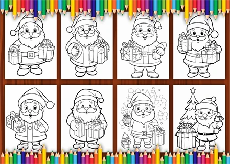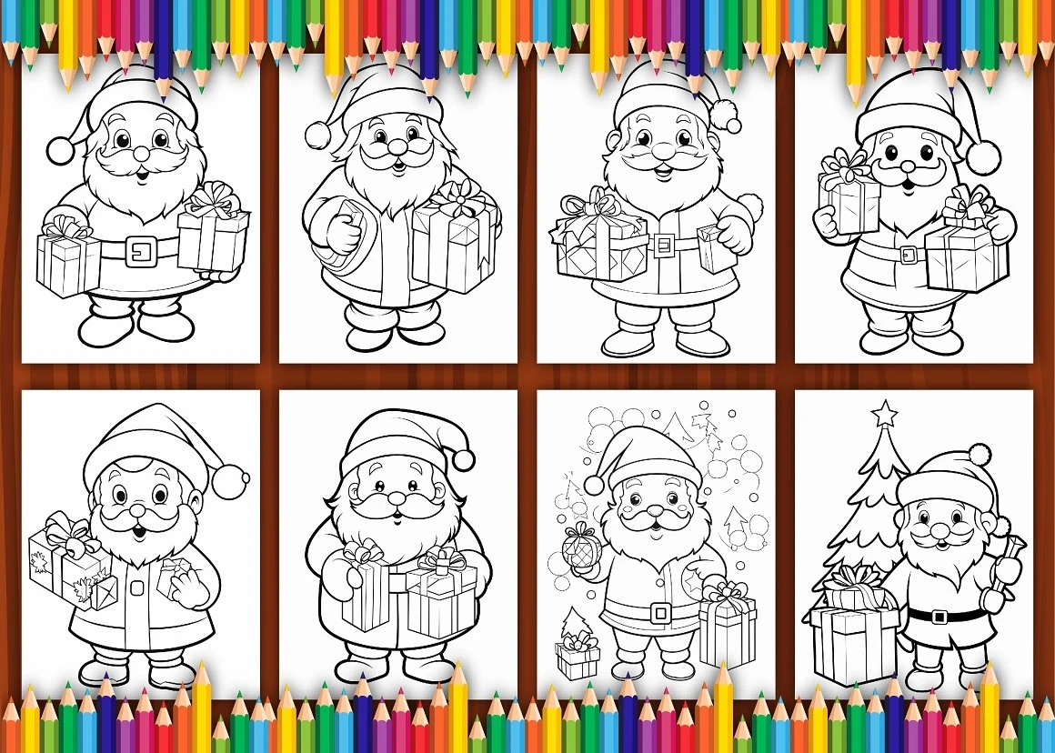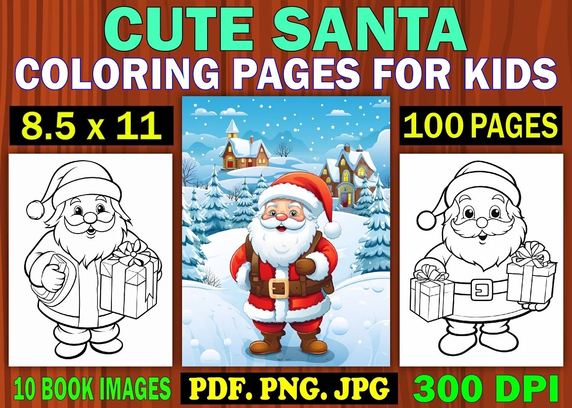 Cute Santa Coloring Pages for Kids 4 : Word Searches, Color- By-Numbers, Puzzles, Count-and-Color,