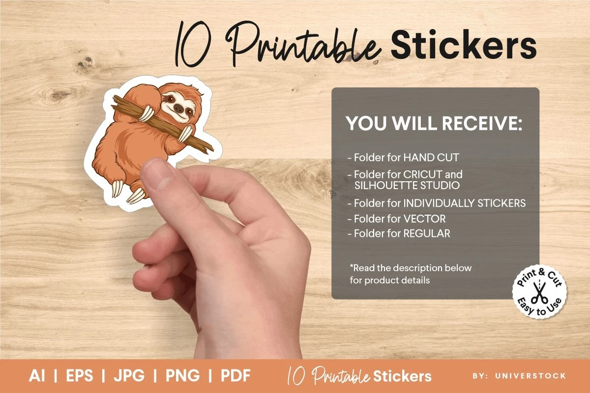 All stickers are in AI & EPS format (Resizable, scaleup & down, add & remove elements or recolor without image quality loss)