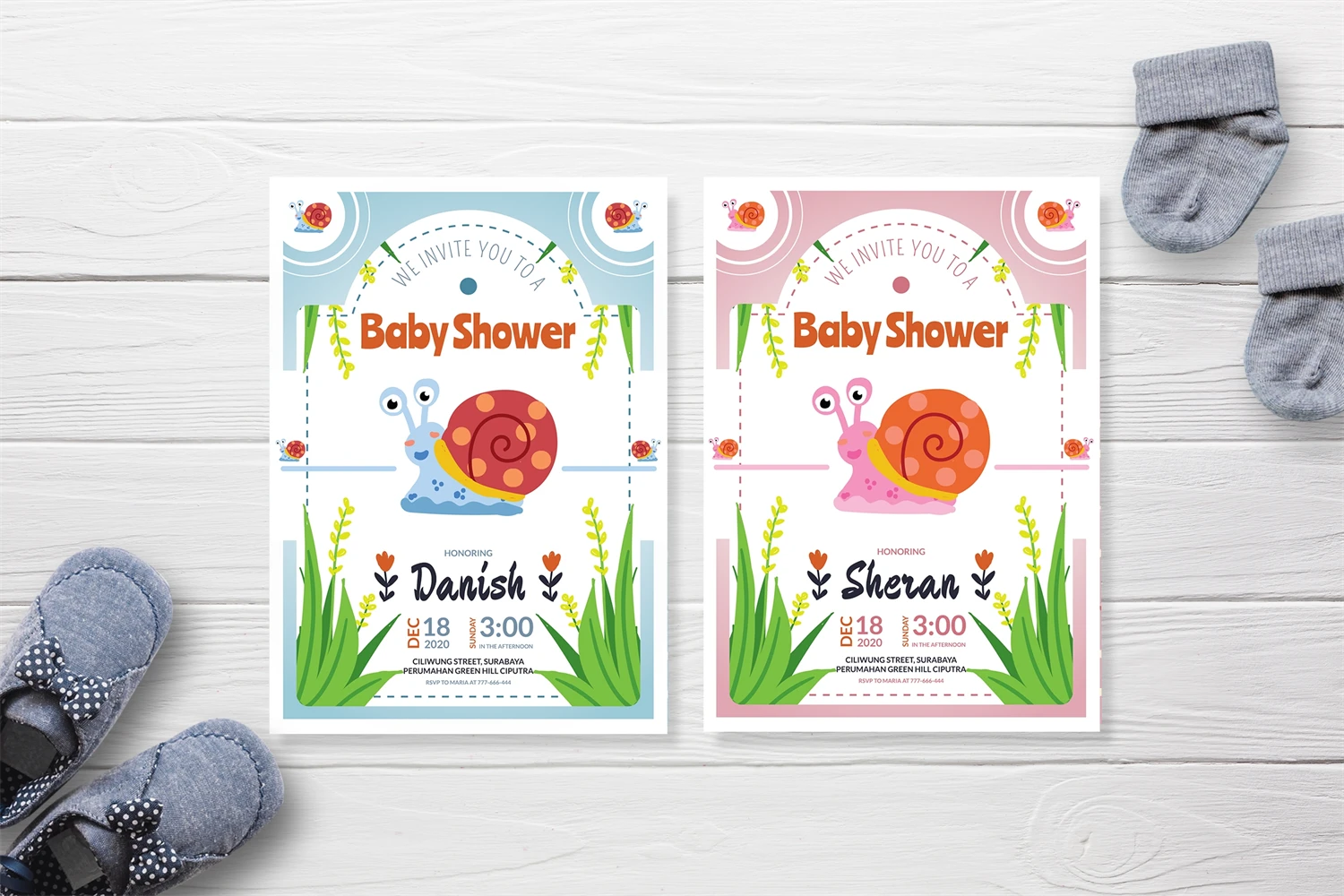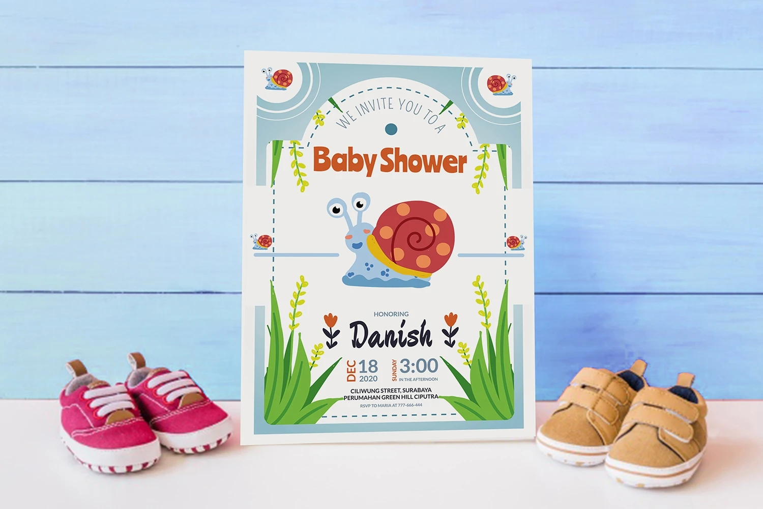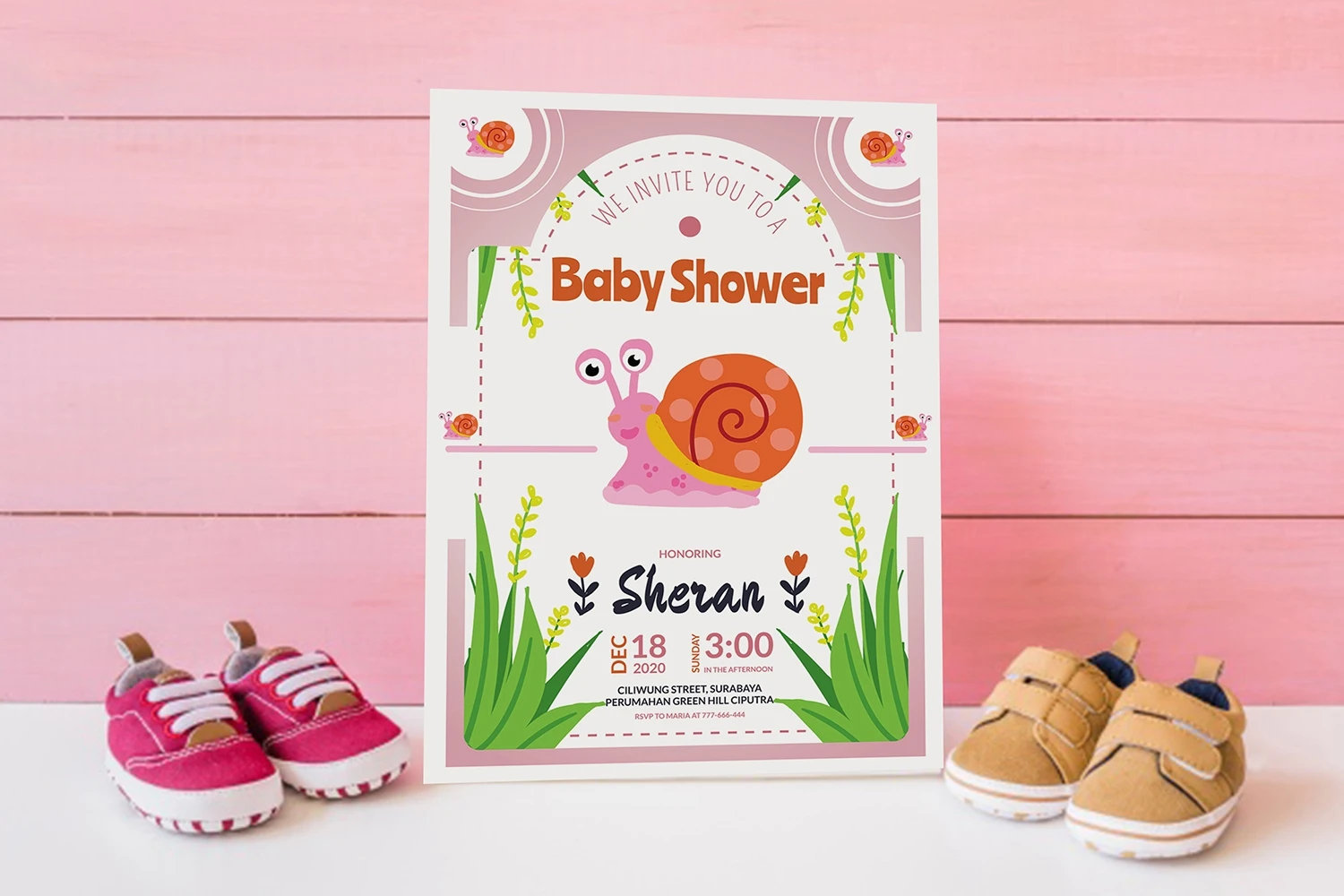 Cute Snail - Baby Shower Invitation, is an invitation card leaflet, poster design, etc. Simple and very elegant You can easily edit & adjust each design because each layer such as text, images and shapes are well organized and highlighted.
