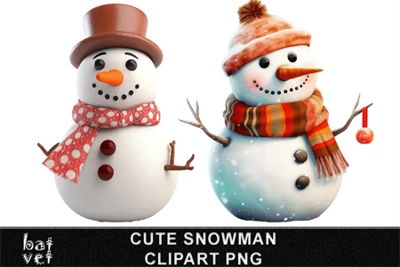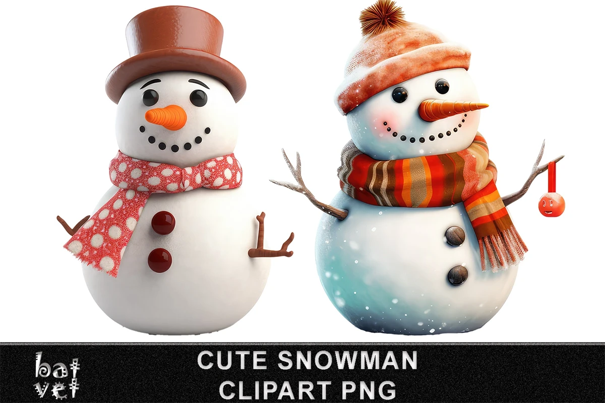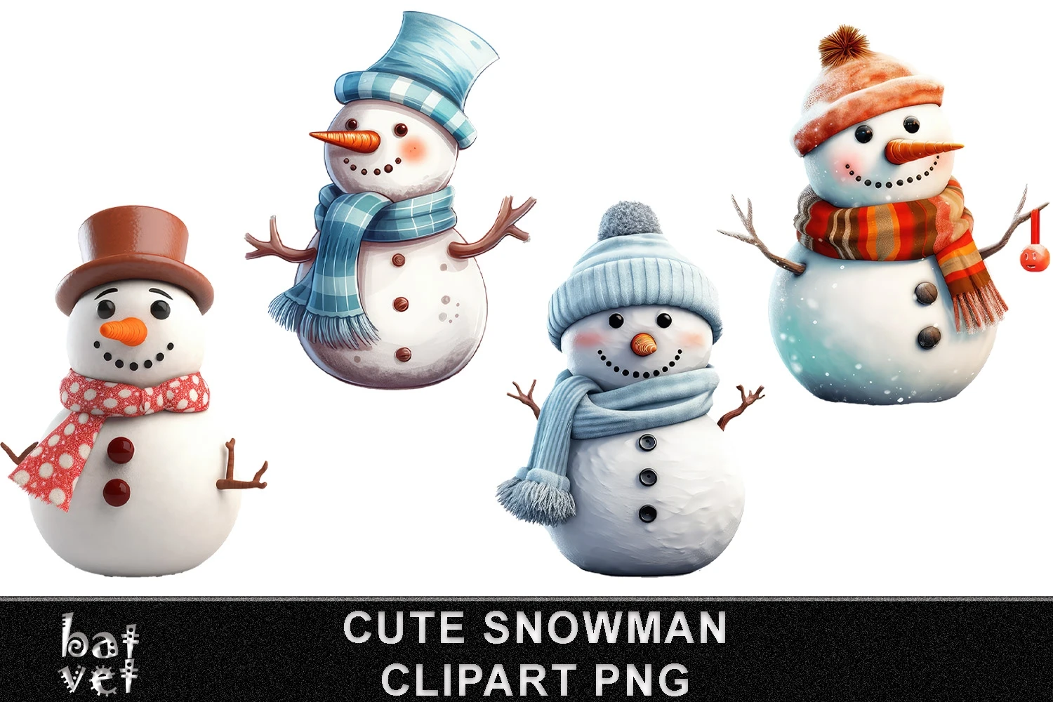 Cute Snowman Clipart PNG / Christmas Snowman Illustration