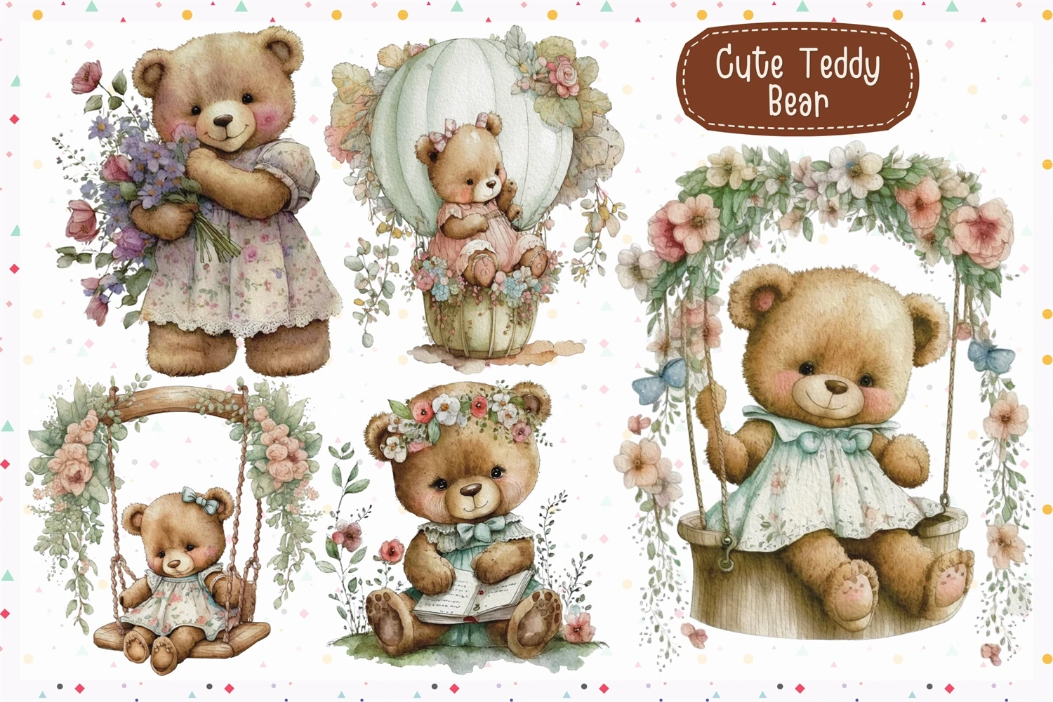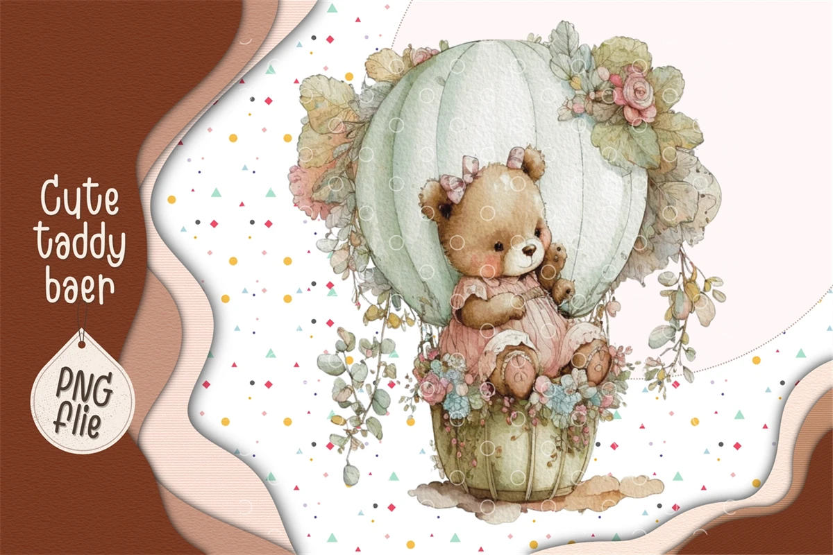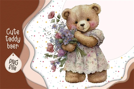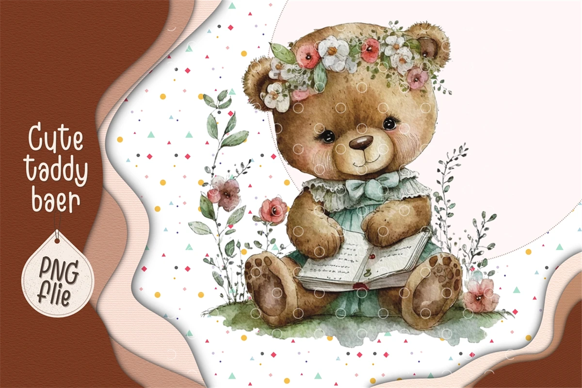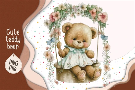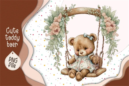 Cute Teddy bear in watercolor clipart