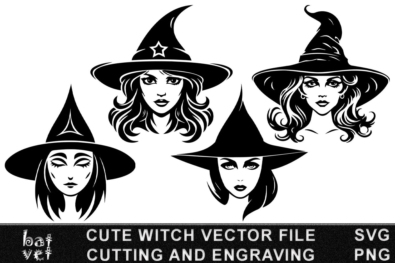 Cute Witch SVG Vector Bundle / Witch Face Cutting Files Design