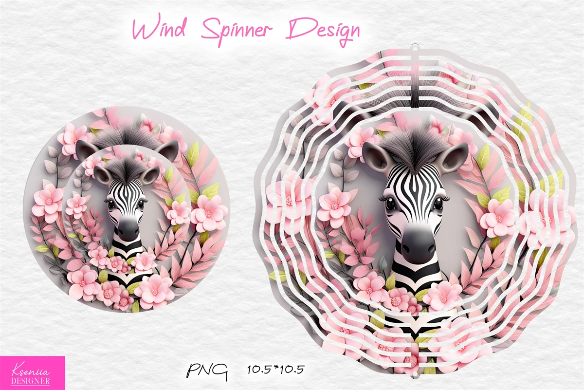 Cute Zebra Wind Spinner Sublimation Flowers Design