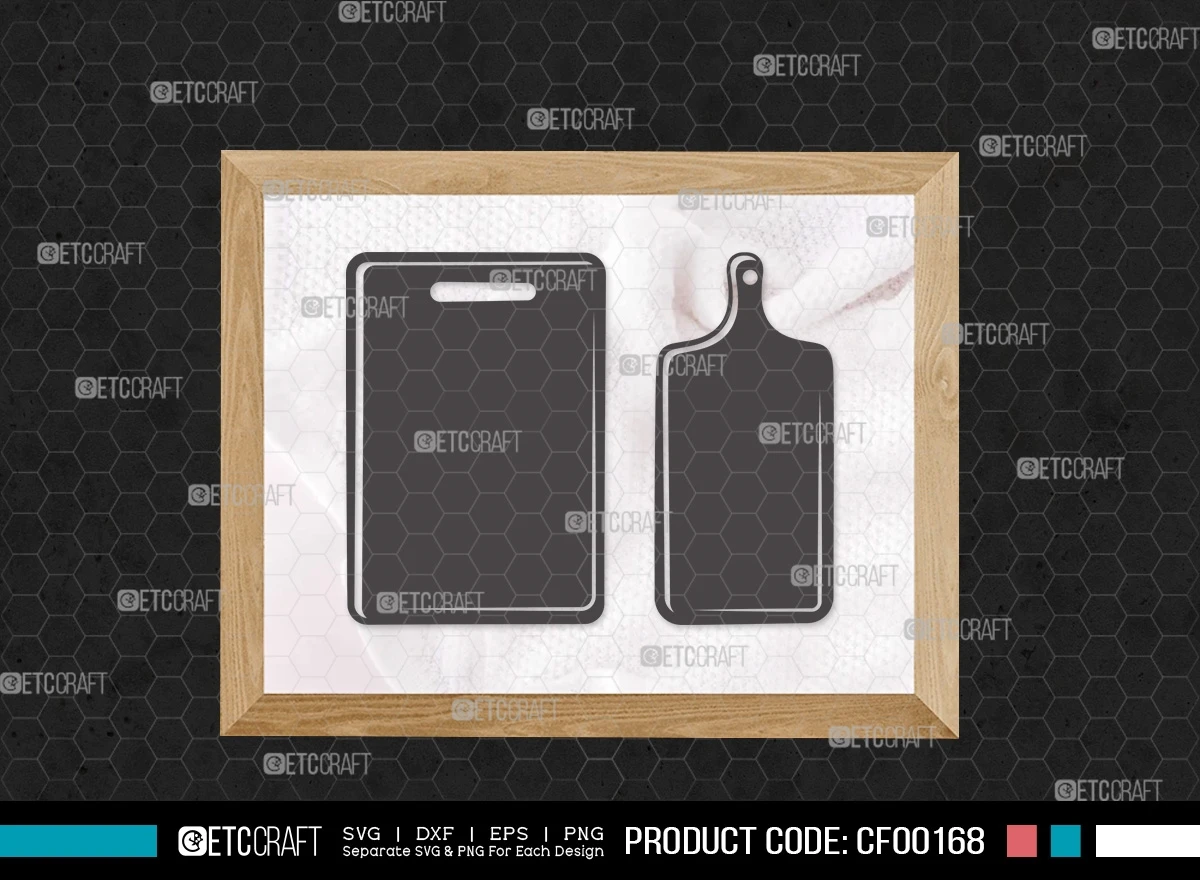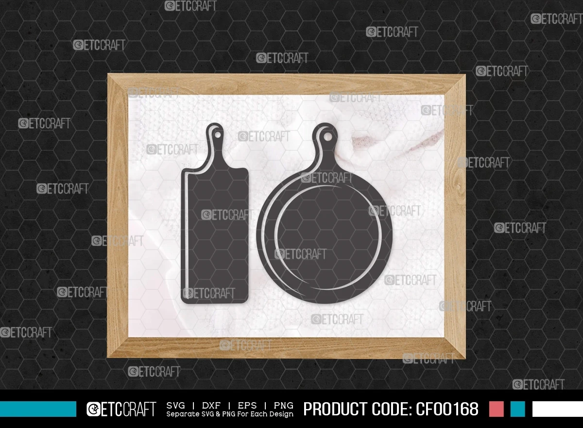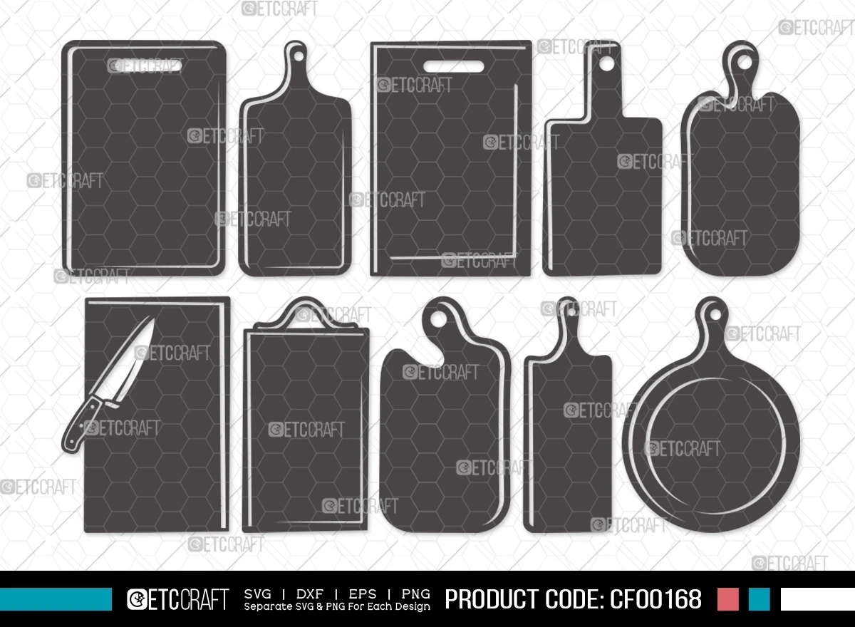 Upgrade your kitchen-themed crafts and culinary projects with our Cutting Board Silhouette Kitchen Cooking Board With Handle SVG Cut File Bundle. These silhouette designs of cutting boards bring a touch of sophistication and creativity to your DIY ventures and cooking-inspired creations.