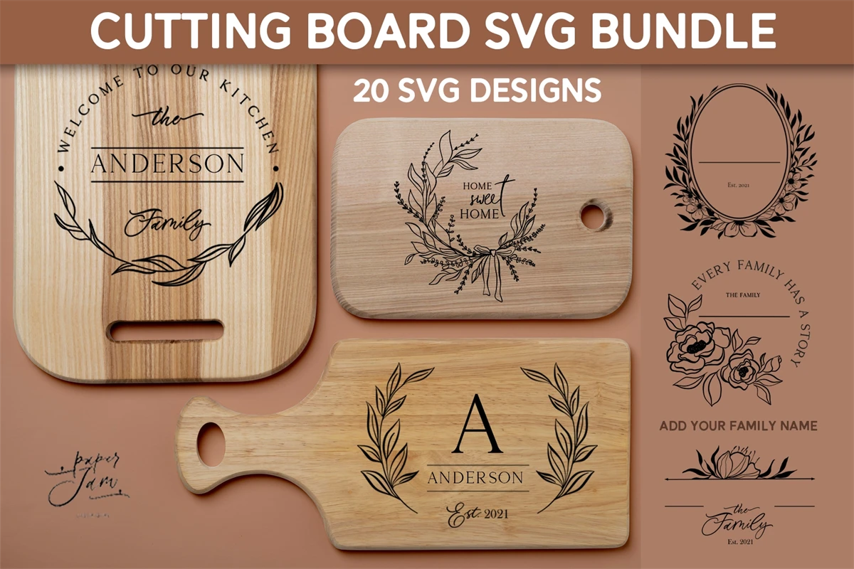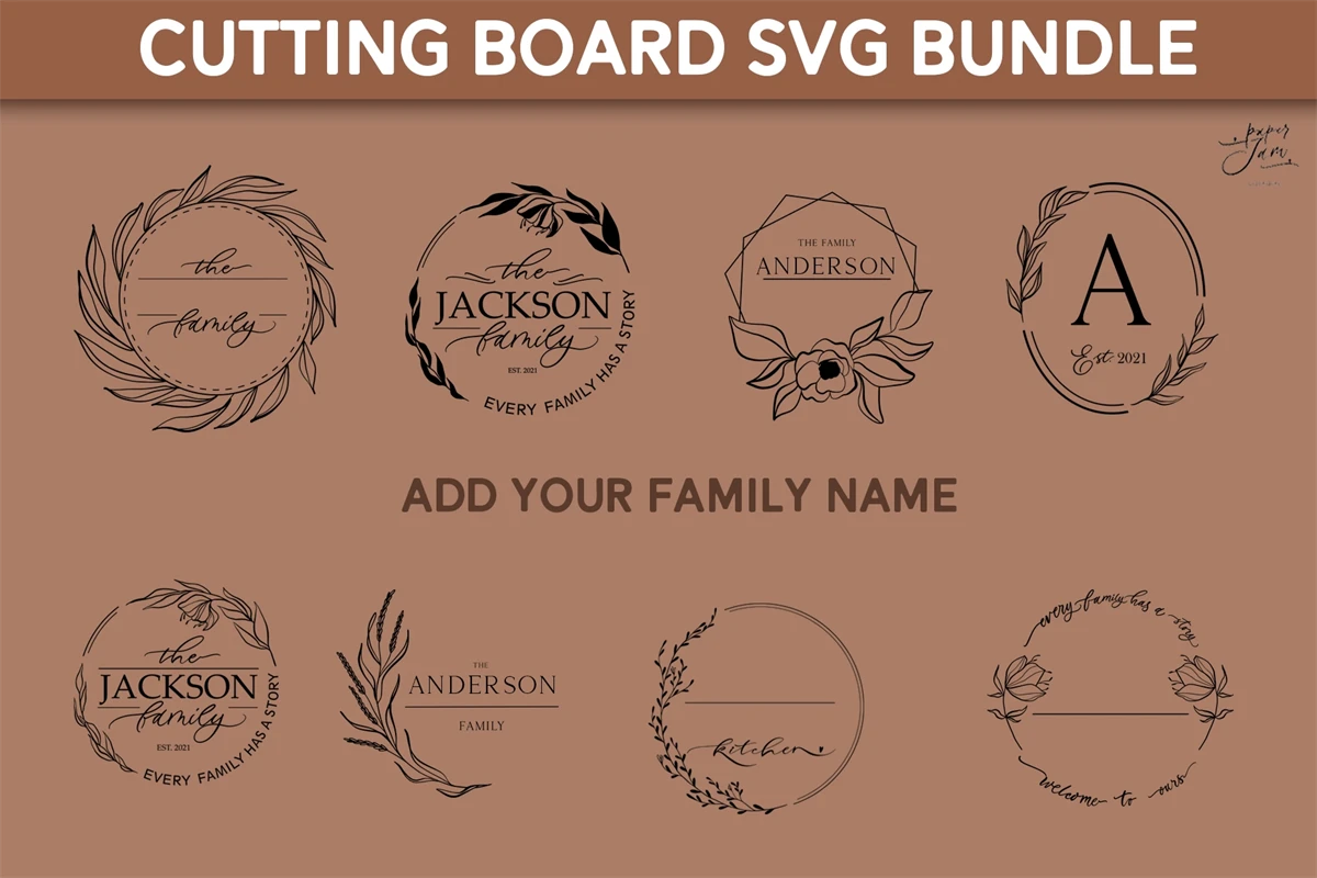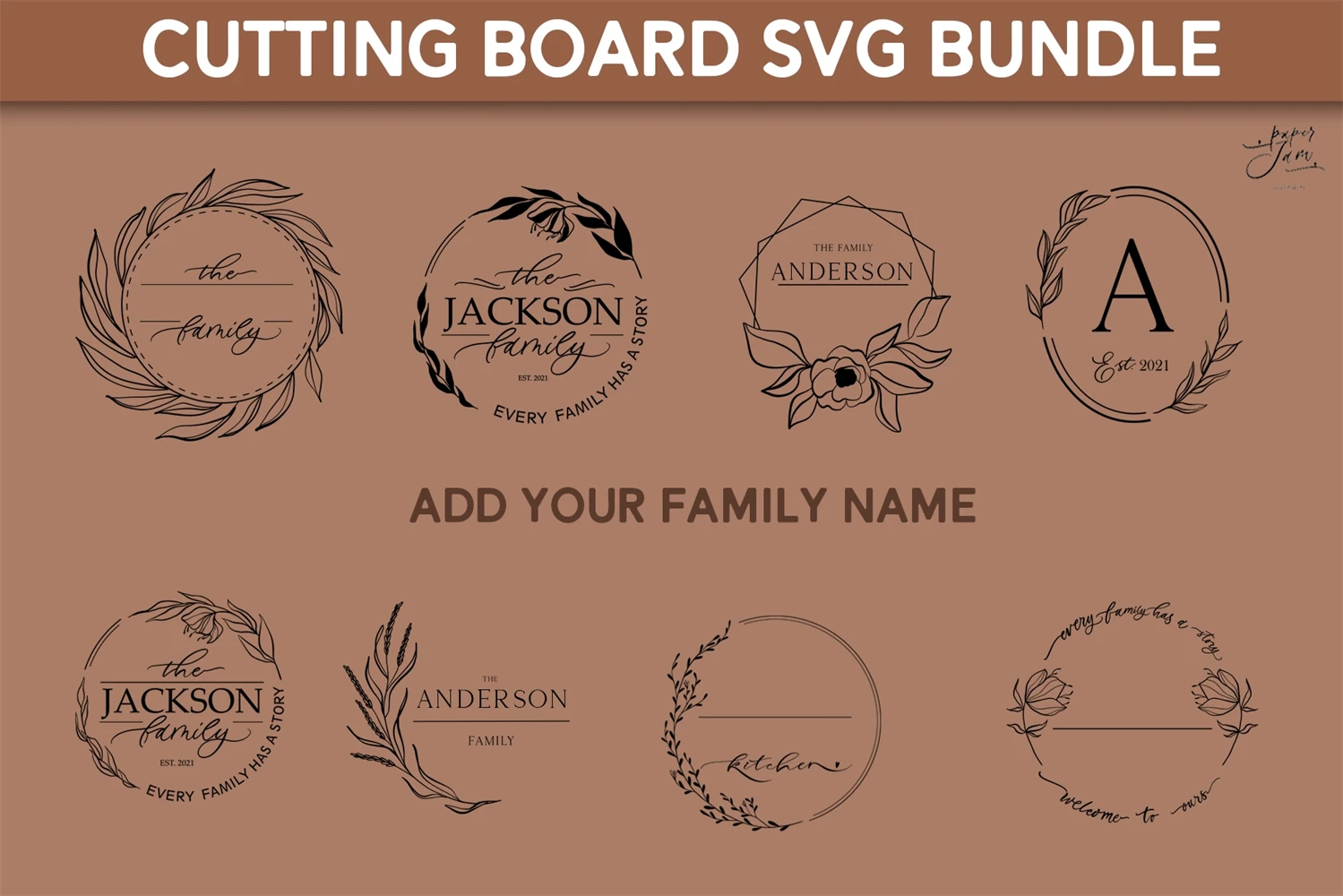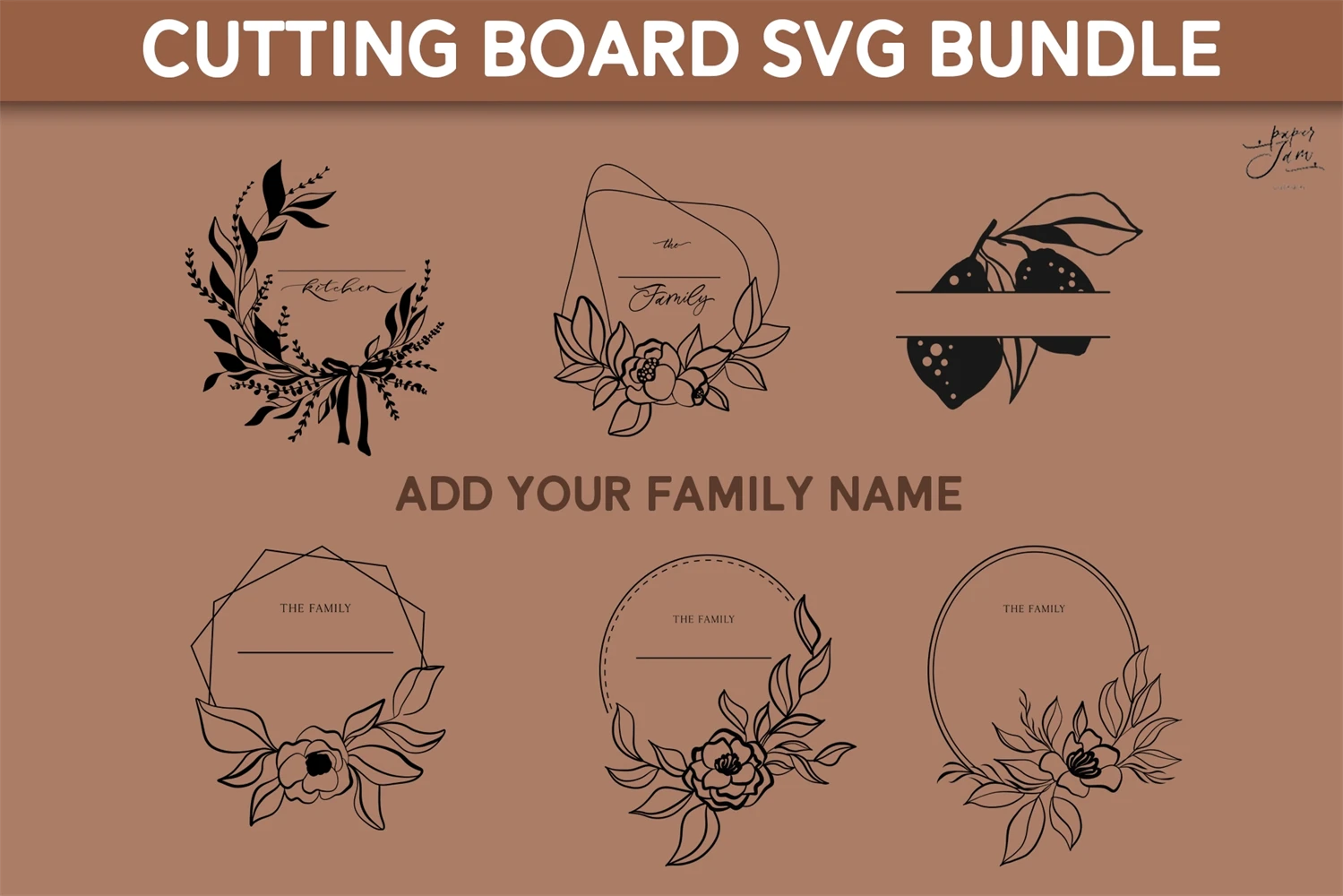 Cutting board svg, Floral Kitchen monogram svg, modern farmhouse svg for wooden sign. Glowforge design, laser cutting file, engraving design!