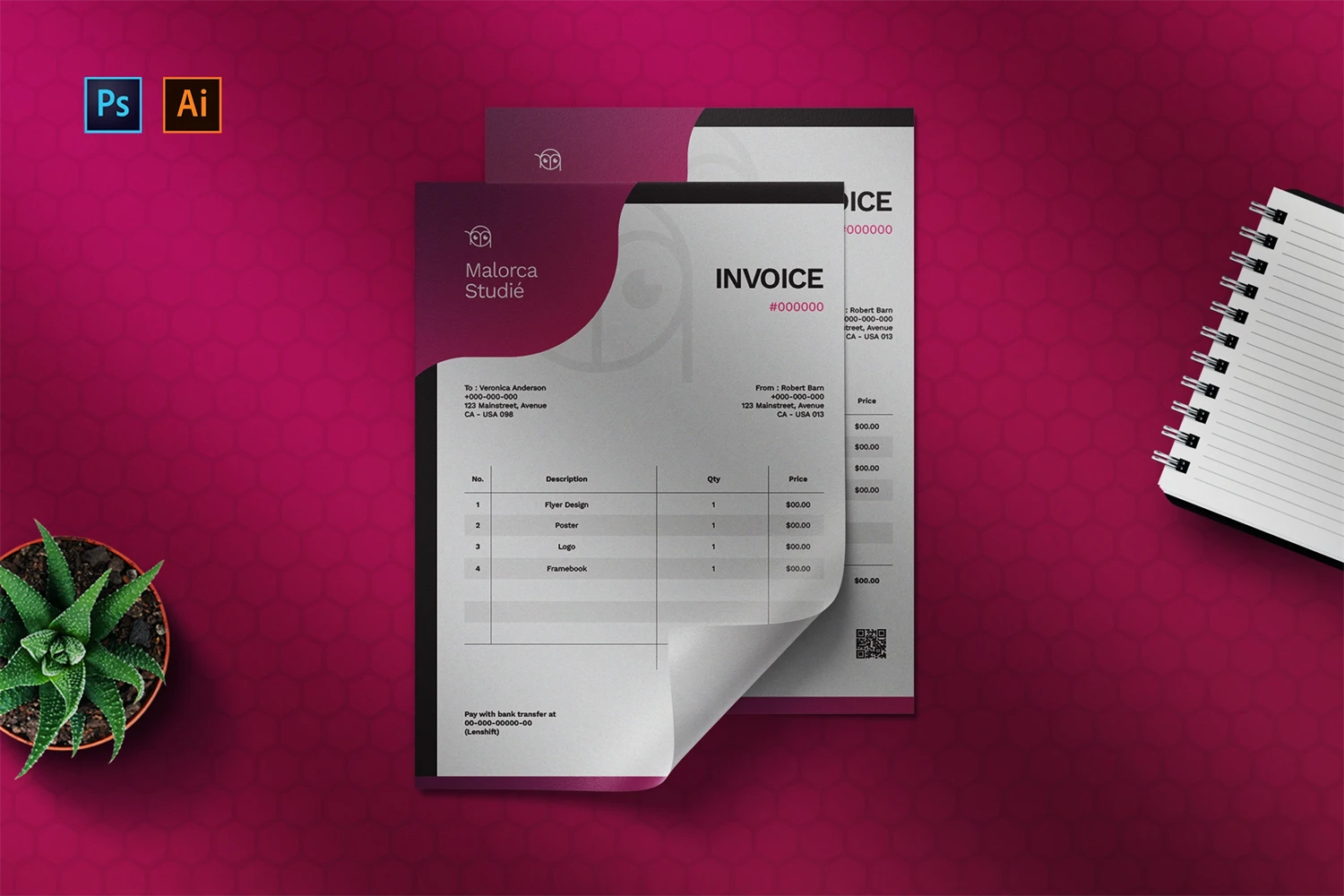 The invoice designs from our templates will present your brand with a professional look. Your invoices will look stylish and functional.