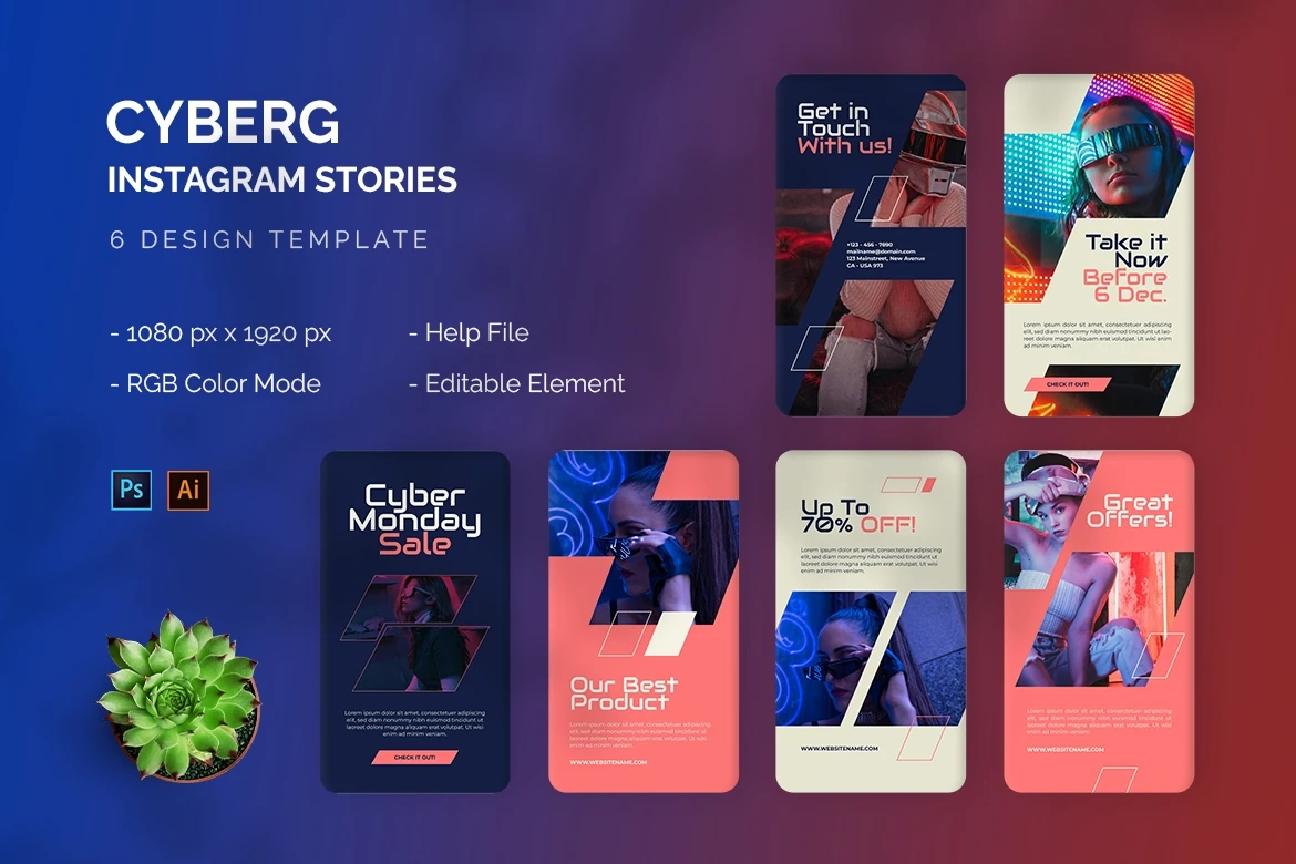 Cyberg - Instagram Story Create stunning Instagram stories using our templates to enhance your Instagram results! Seize the opportunity to increase your visibility and make an impact. Easily drag, drop and save to produce beautiful Stories in minutes.