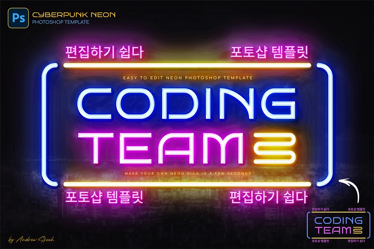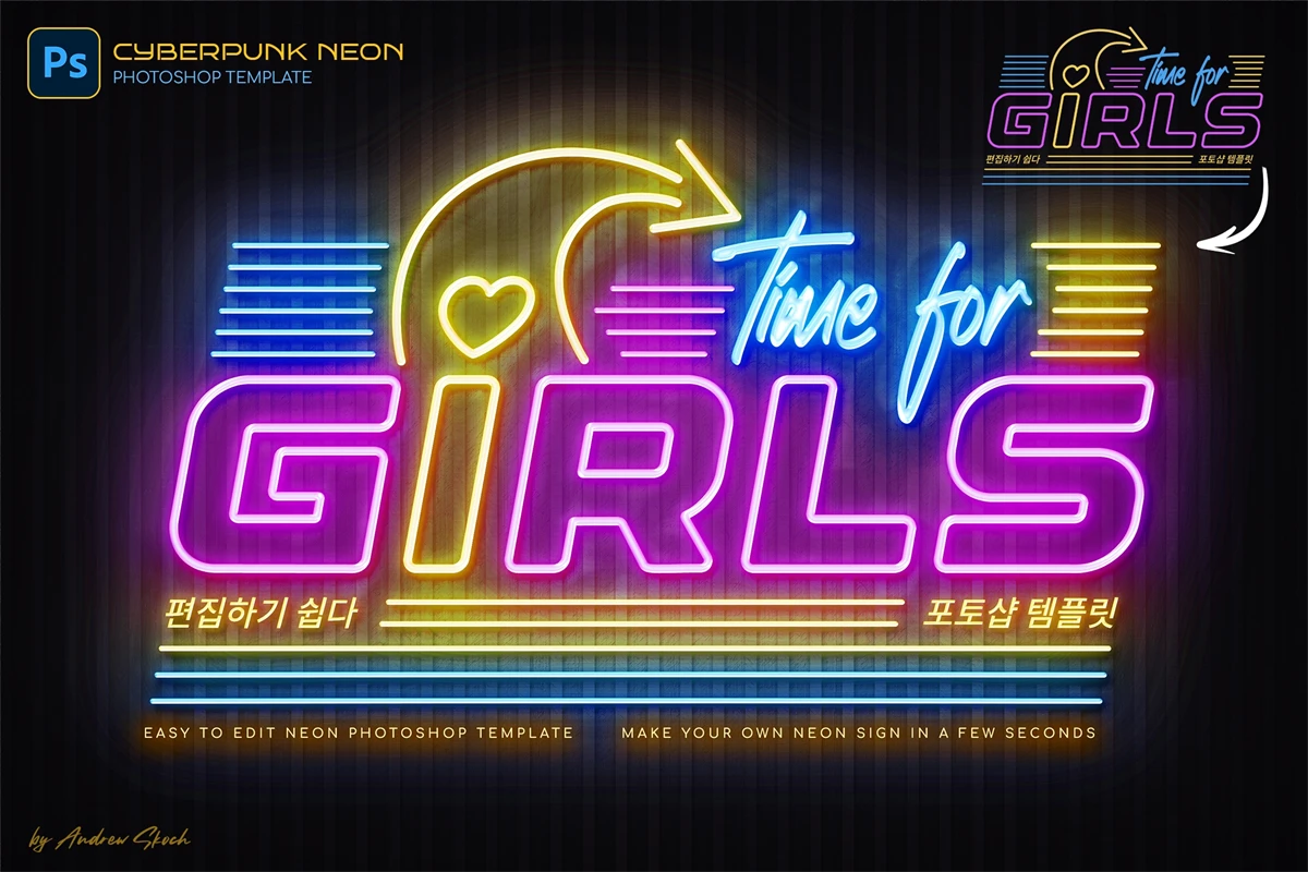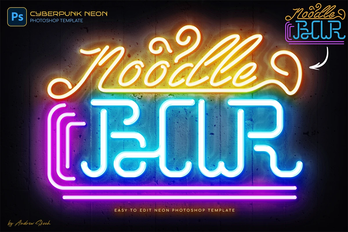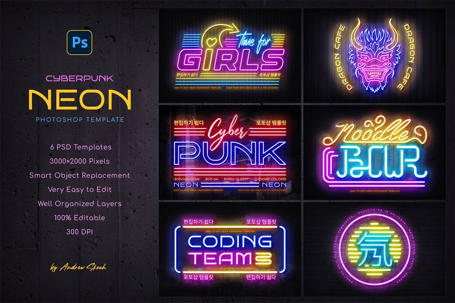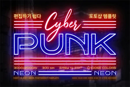 Illuminate your brand with the Cyberpunk Neon Logo Photoshop Template. This dynamic template fuses the futuristic allure of cyberpunk aesthetics with vibrant neon elements, creating a visually stunning backdrop for your logo.
