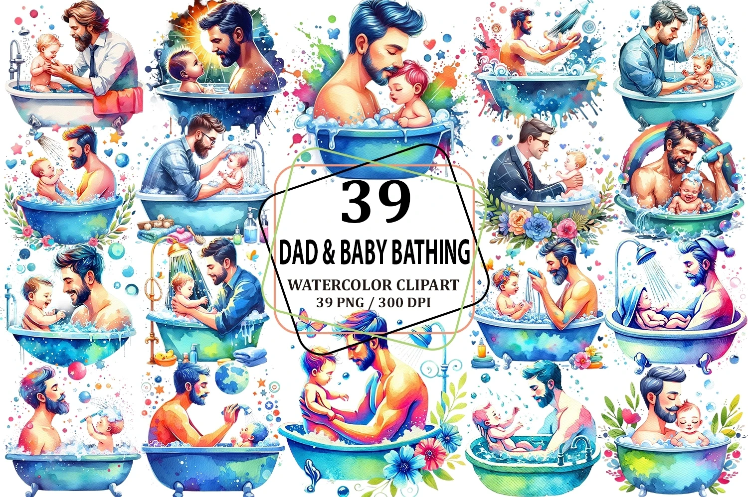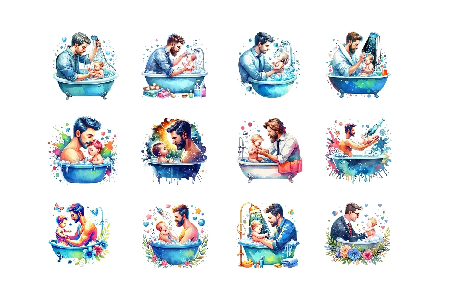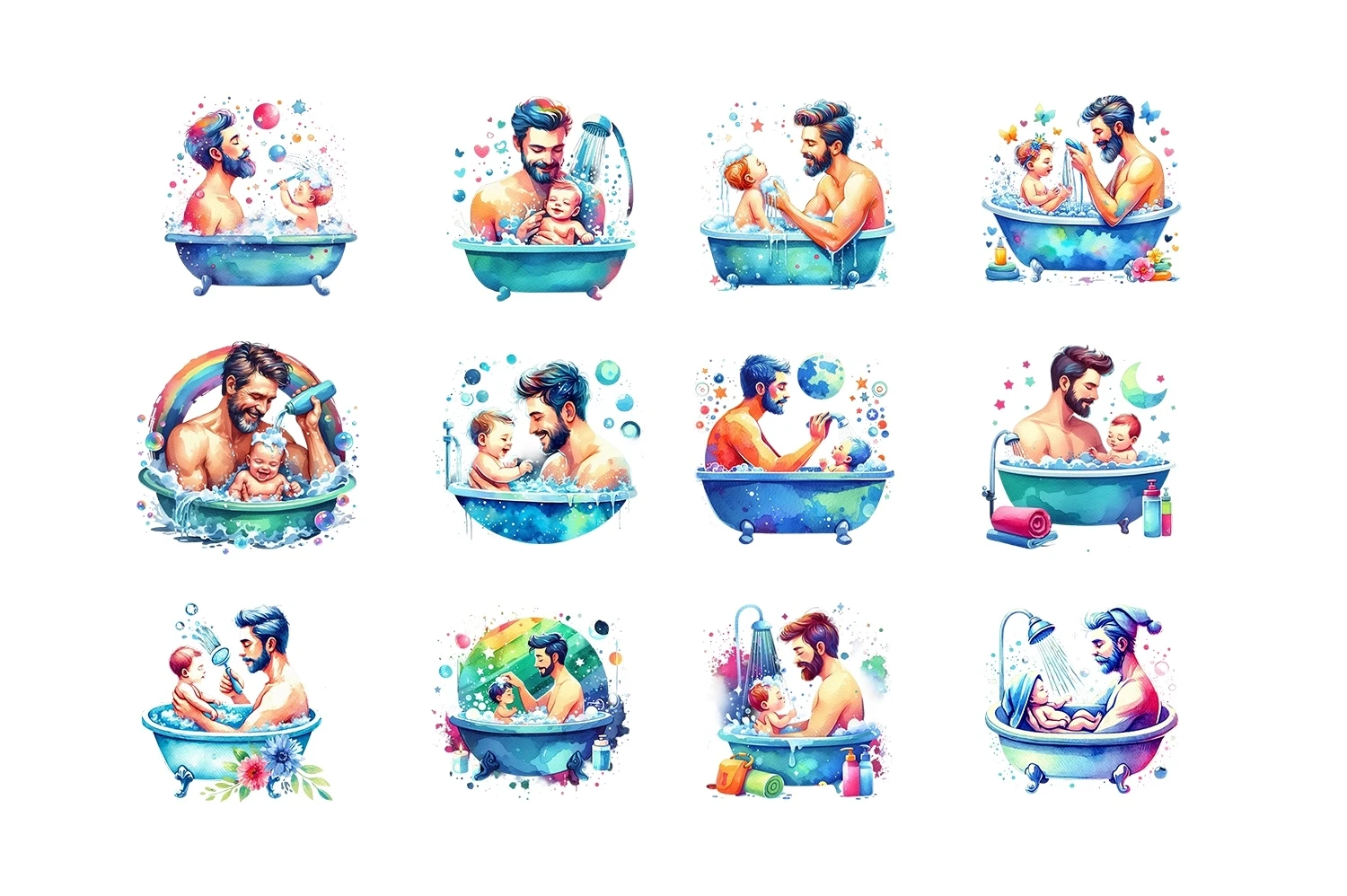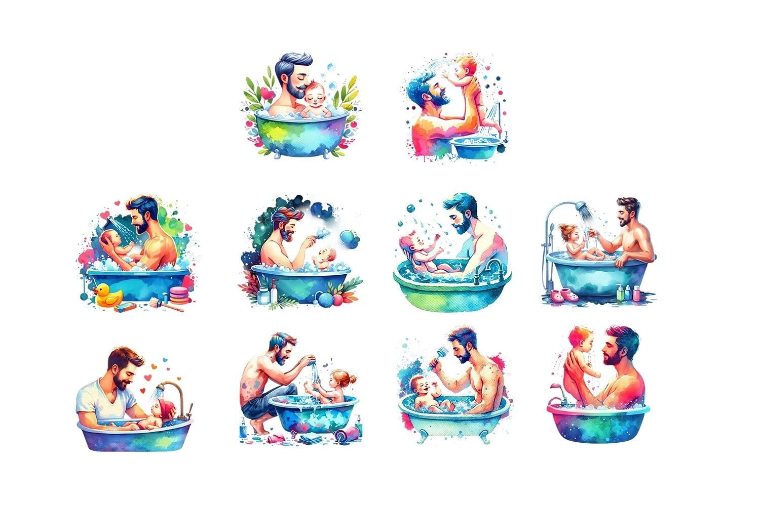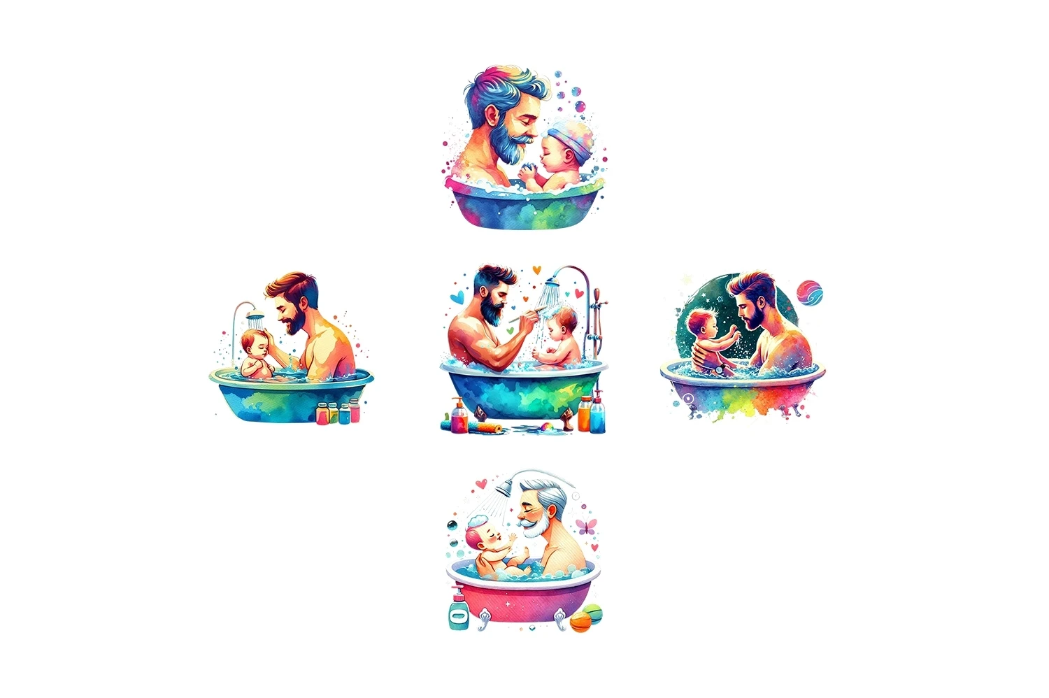 Dad & Baby Bathing Fathers Day Clipart Sublimation PNG (AI-generated).