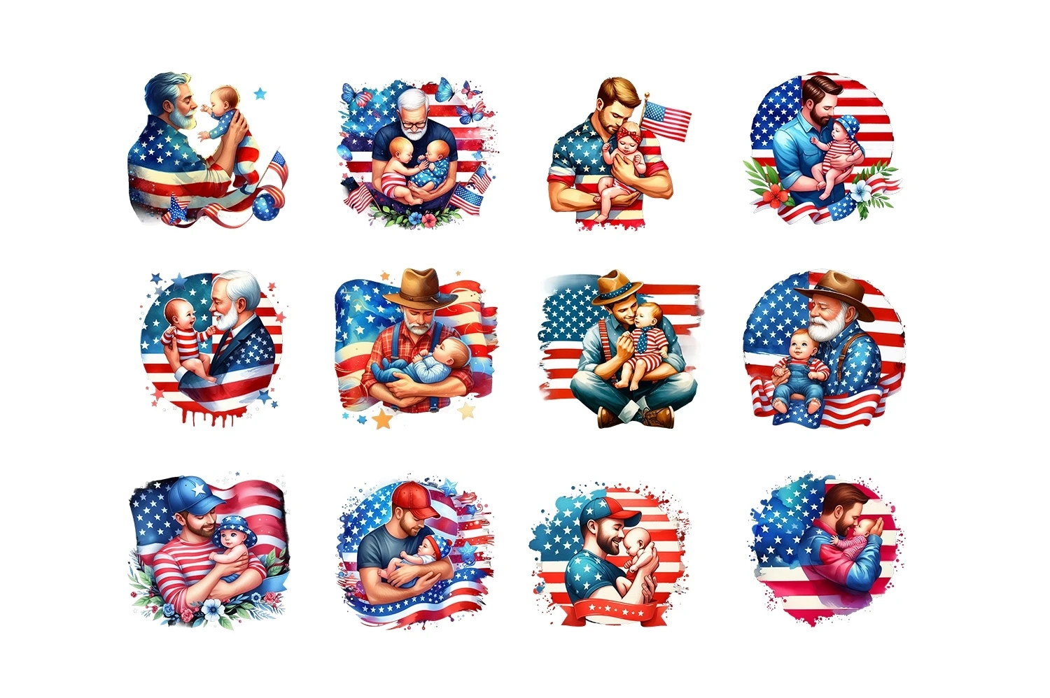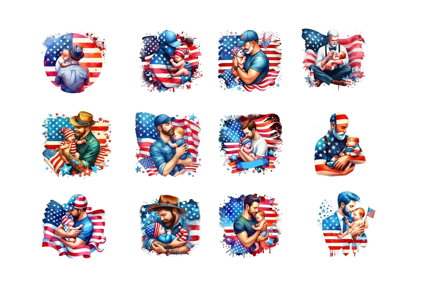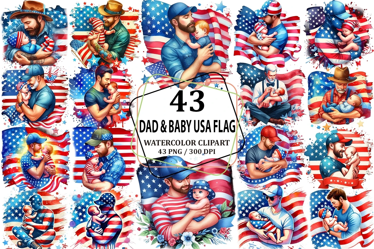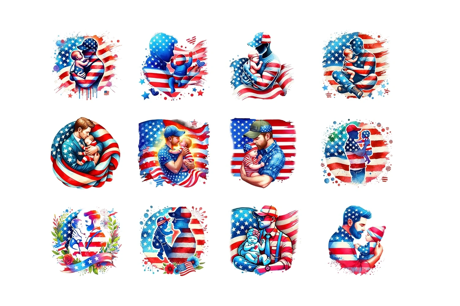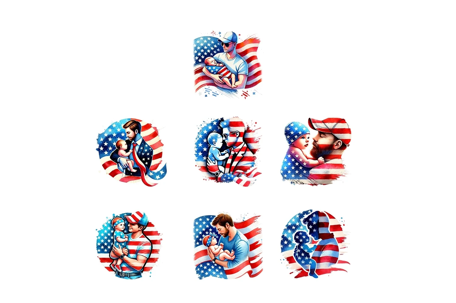 Dad & Baby USA Flag Sublimation Clipart PNG (AI-generated).