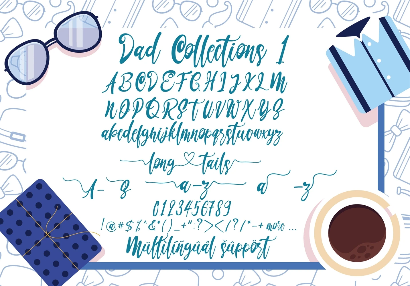 Introducing Dad Collections, a versatile duo font consisting of a modern script and display font that's perfect for a wide range of design projects. Whether you're designing wedding invitations, postcards, magazines, or any other project, Dad Collections adds a touch of elegance and sophistication to your work. With its clean lines, stylish curves, and legible characters, this font is sure to become a favorite in your design arsenal.