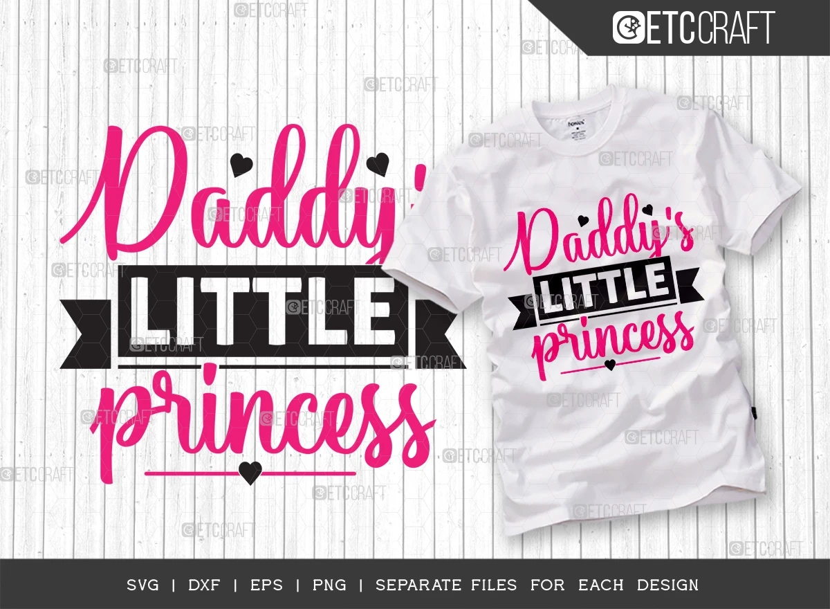 Our "Daddys Little Princess SVG Bundle," a delightful collection of Princess-themed designs that are perfect for t-shirt designs and various crafts. Crafted with love, this SVG bundle is designed to capture the innocence and charm of baby girls, making it an ideal choice for proud parents and gift-givers alike.