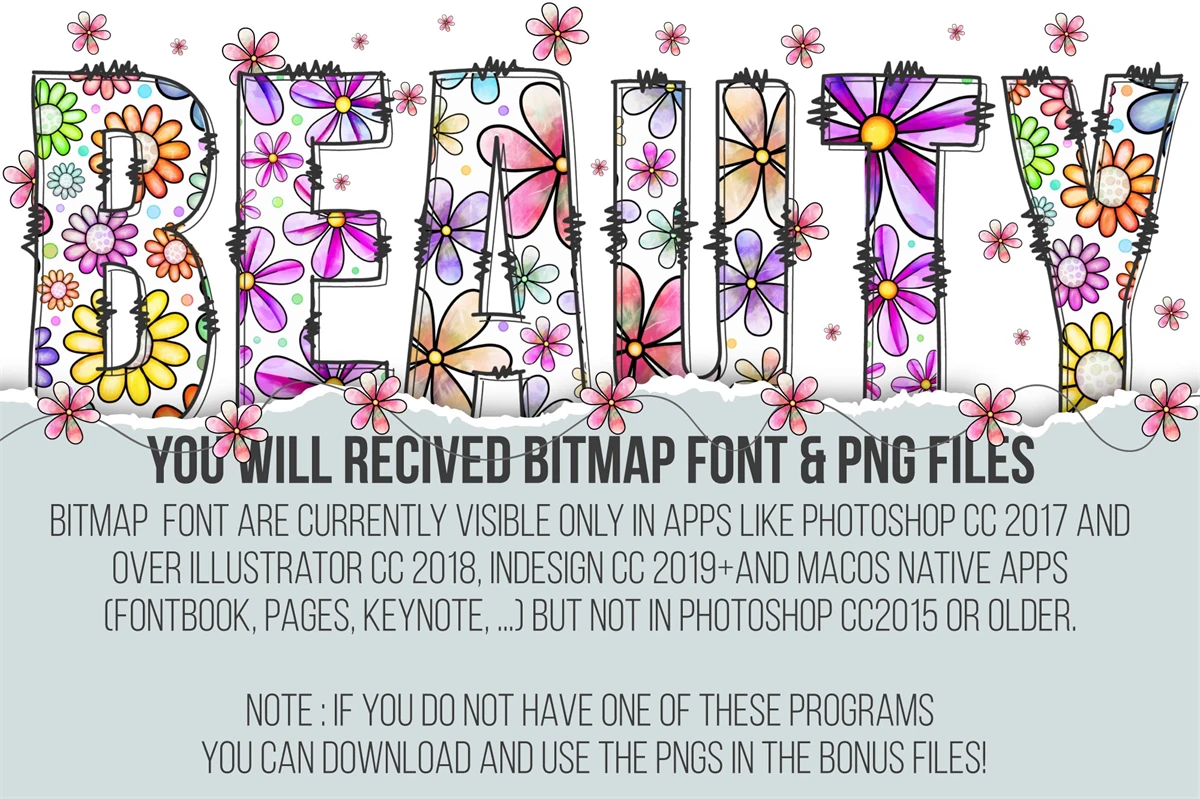 Bring a touch of nature to your designs with the Daisy Font and Alphabet! Each letter is carefully crafted with playful, hand-drawn daisies, adding a cheerful and whimsical feel to your projects. This font is perfect for spring-themed designs, wedding invitations, baby showers, greeting cards, and more.