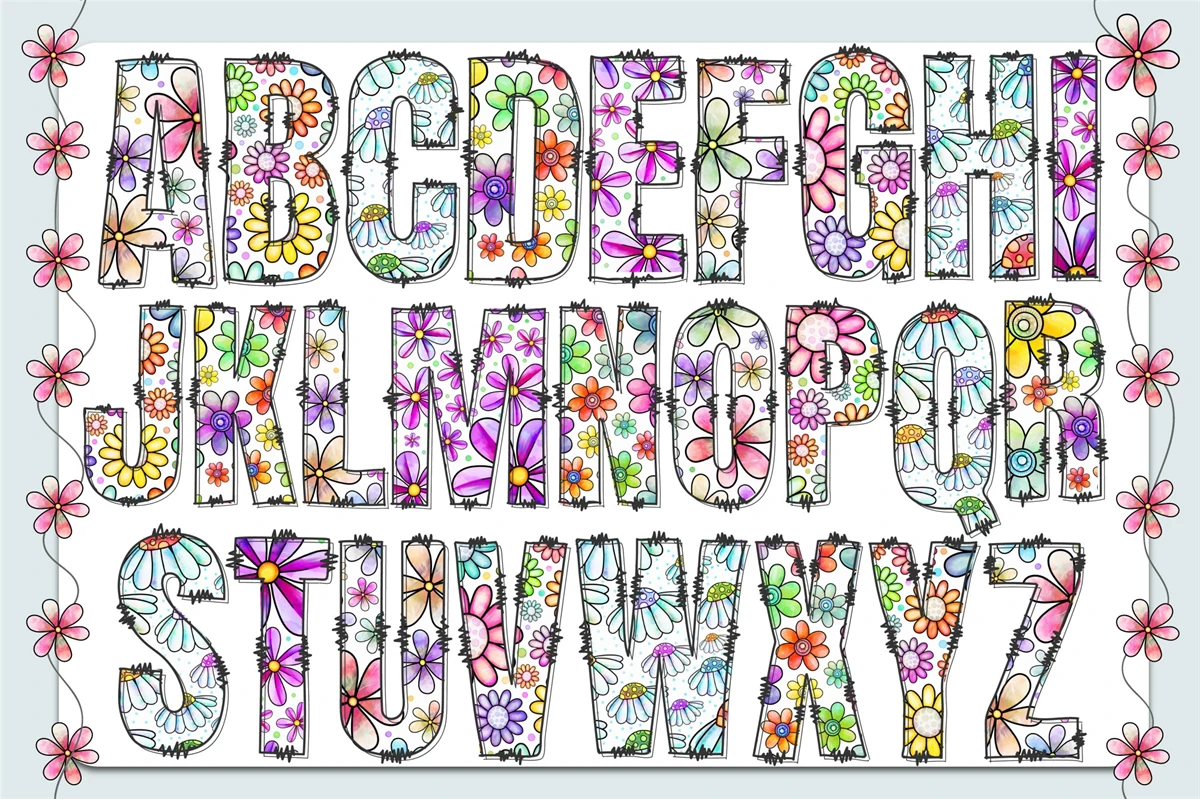 Whether youre creating charming posters, fun craft projects, or nature-inspired branding, the Daisy Font and Alphabet adds a fresh and lighthearted vibe to any project. With its floral, decorative style, its ideal for both digital and print designs.