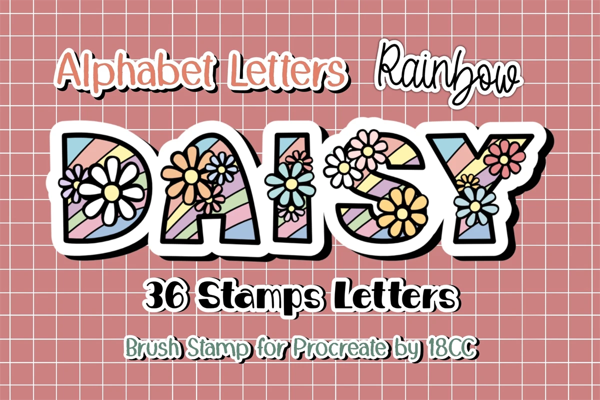 36 Daisy Rainbow Letters Stamp Brush Procreate