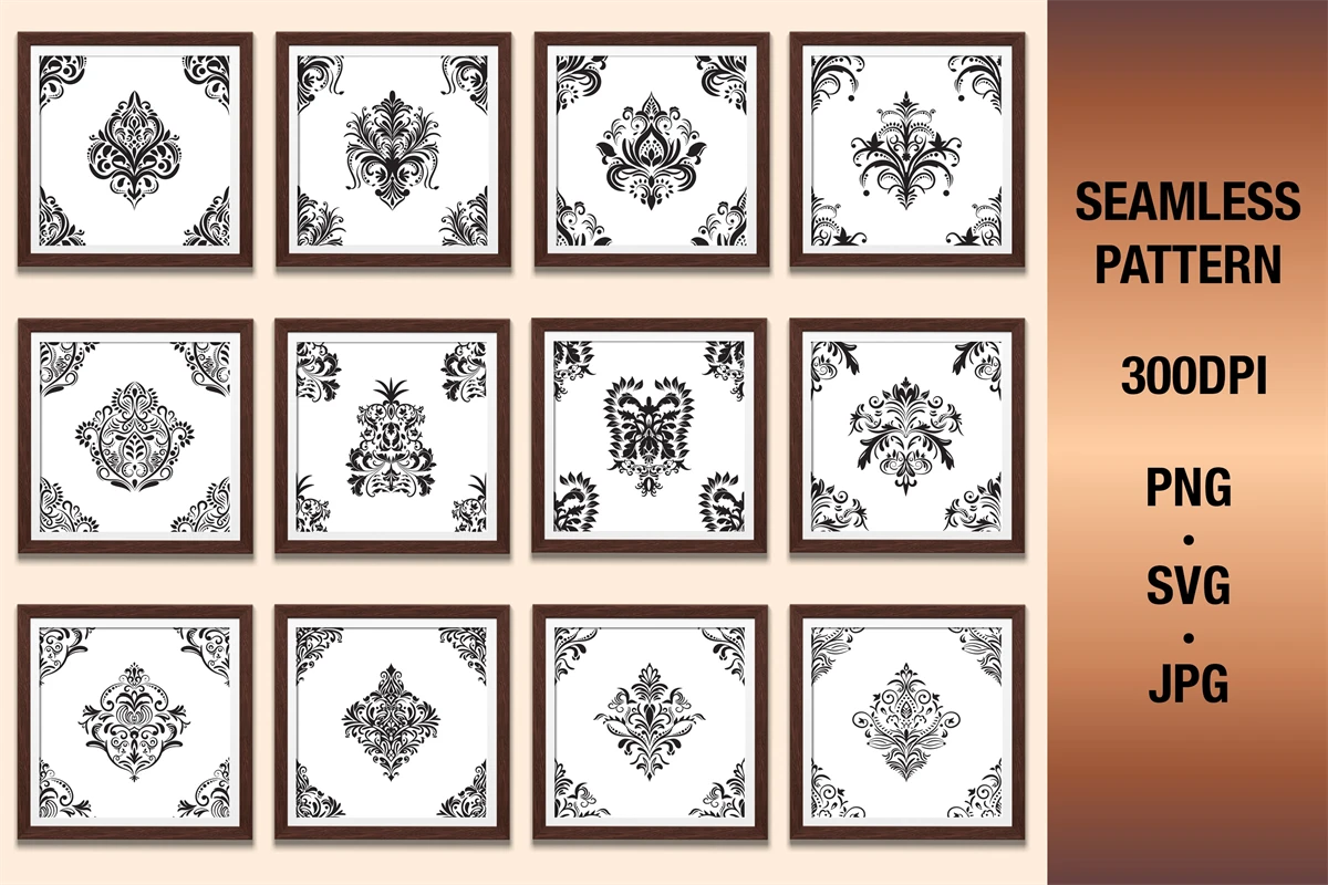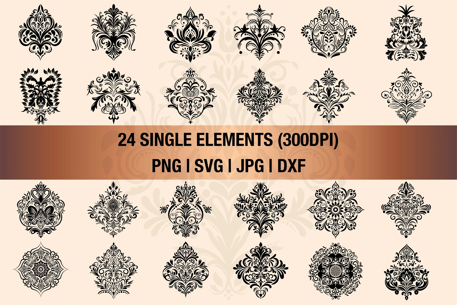Introducing intricated hand-drawn damask designs with the full package of all files you need!
