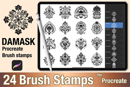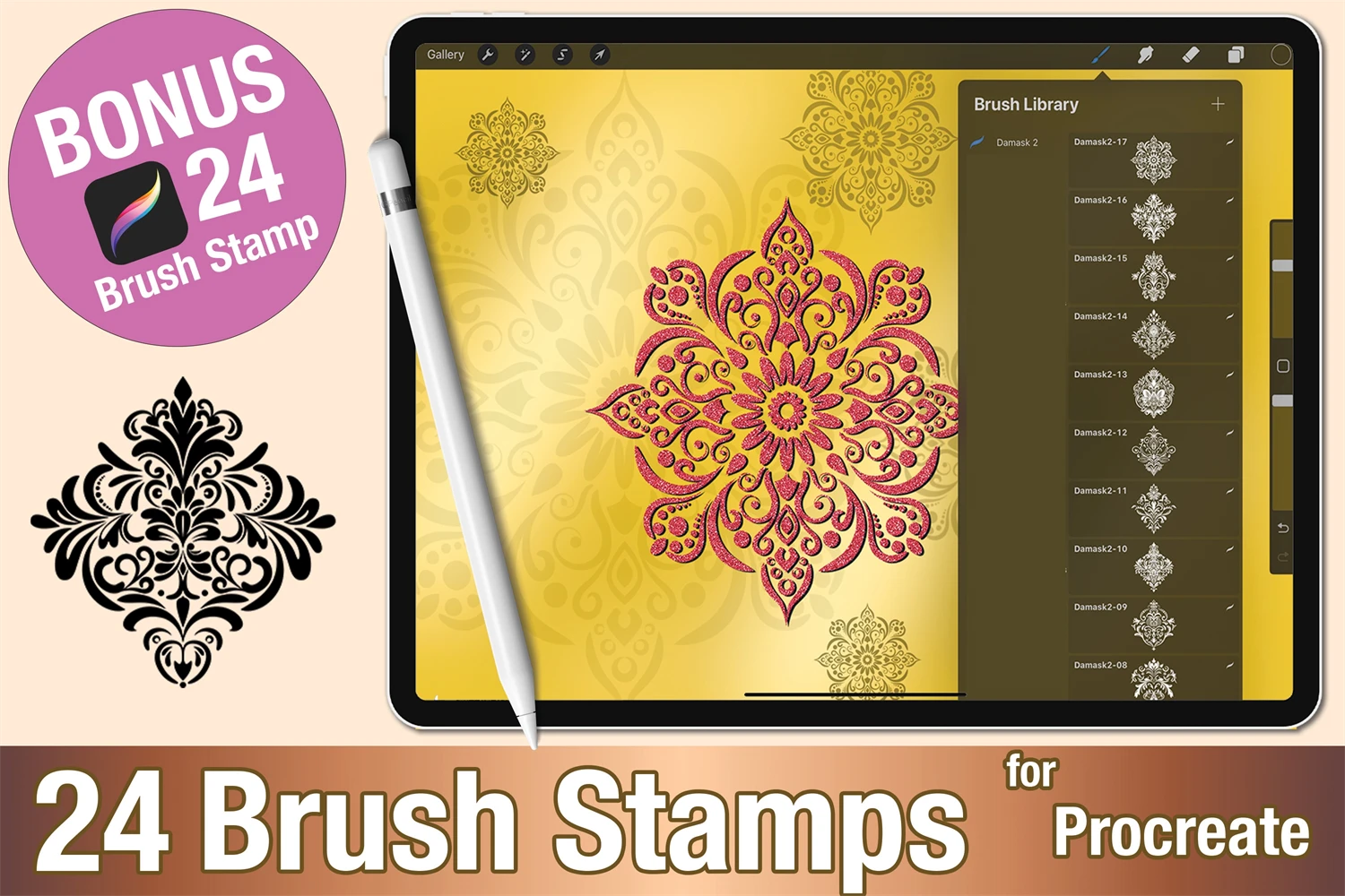 **BONUS: Procreate brushstamp file for all 24 damasks