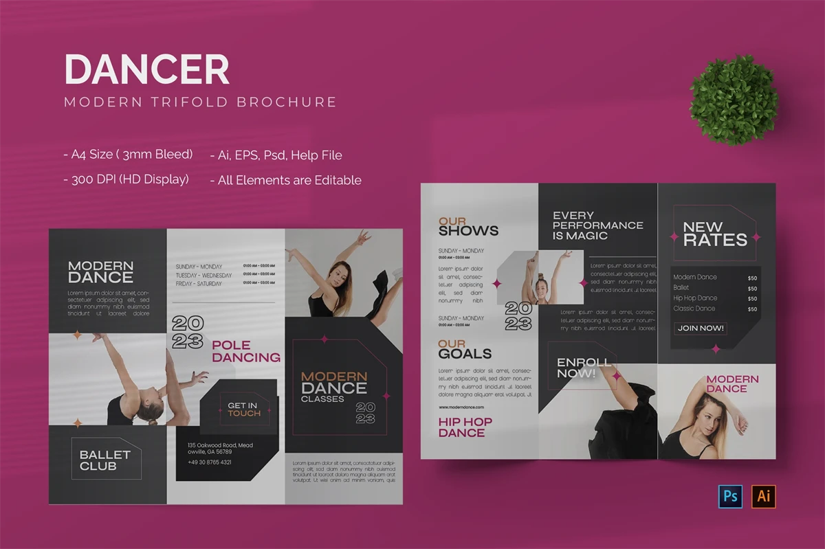 A trifold brochure is a type of corporate business flyer with a clean, simple, and professional style that is useful for promoting the goals of a project. This Brochure Project Is Perfect for Agency, Fashion, Creative, Magazine, Retail, Freelance, Business, and More! Dont worry, its very easy to be edited.