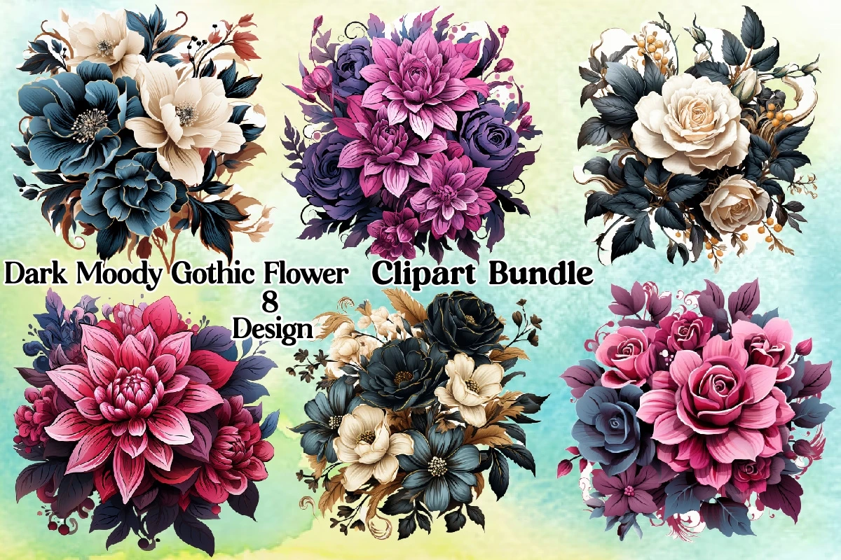 Watercolor Dark Moody Gothic Flower PNG Bundle