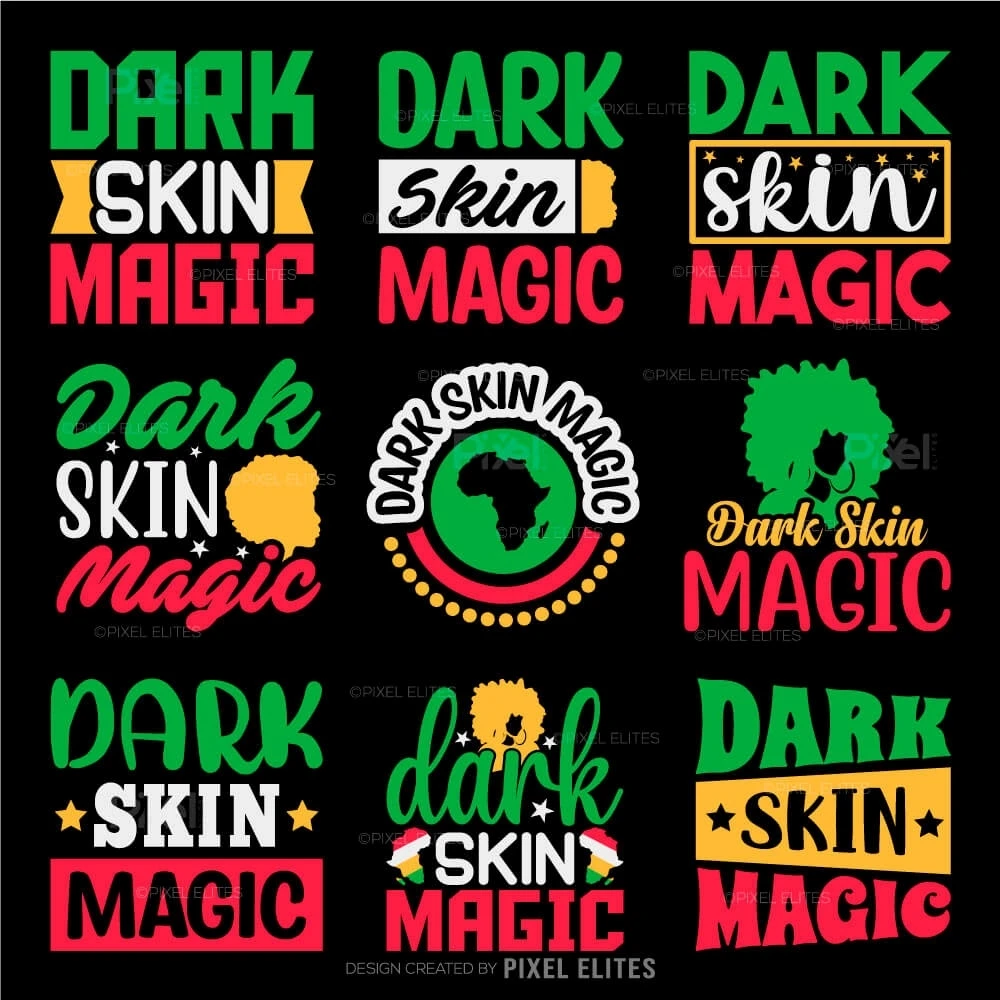 - Empowering Message: "Dark Skin Magic" paired with the "Beautiful Queen" theme celebrates Black beauty and resilience, promoting positivity and pride.
