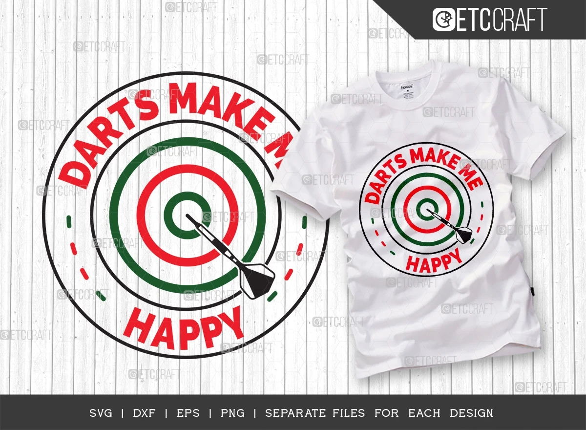 The Darts Make Me Happy SVG Bundle offers a selection of exclusive and captivating darts-themed designs. Stand out from the crowd with these one-of-a-kind SVGs that can't be found elsewhere.