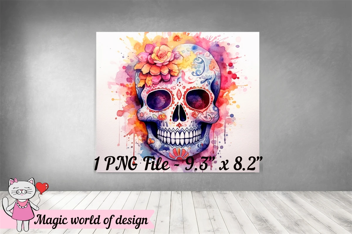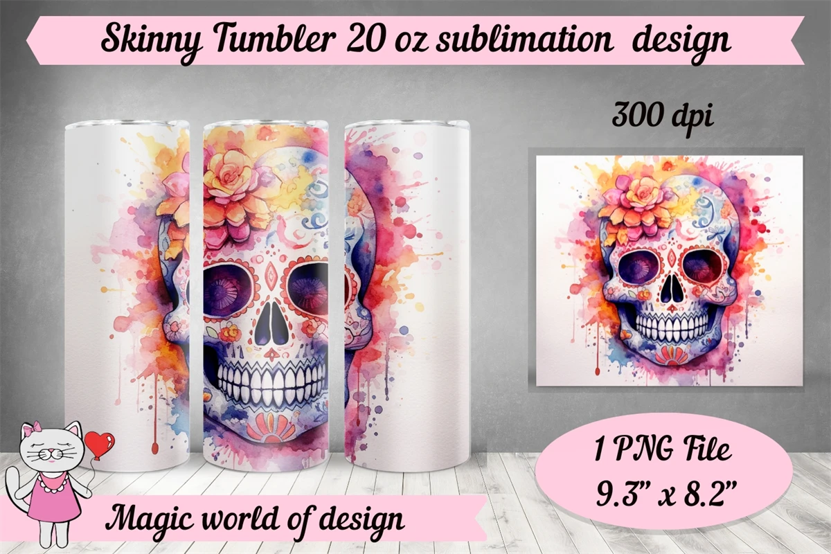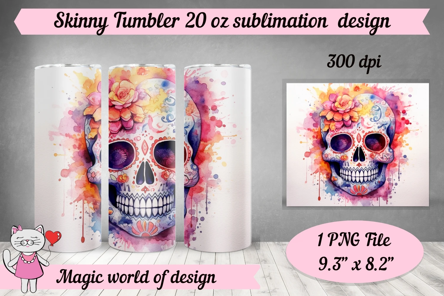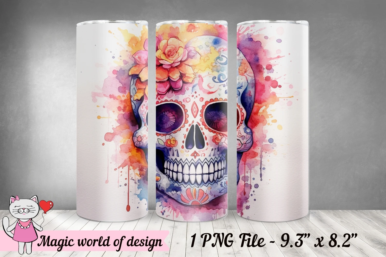 Watercolor Day Of The Dead Sugar Skull Png Tumbler skinny Tumbler 20 oz