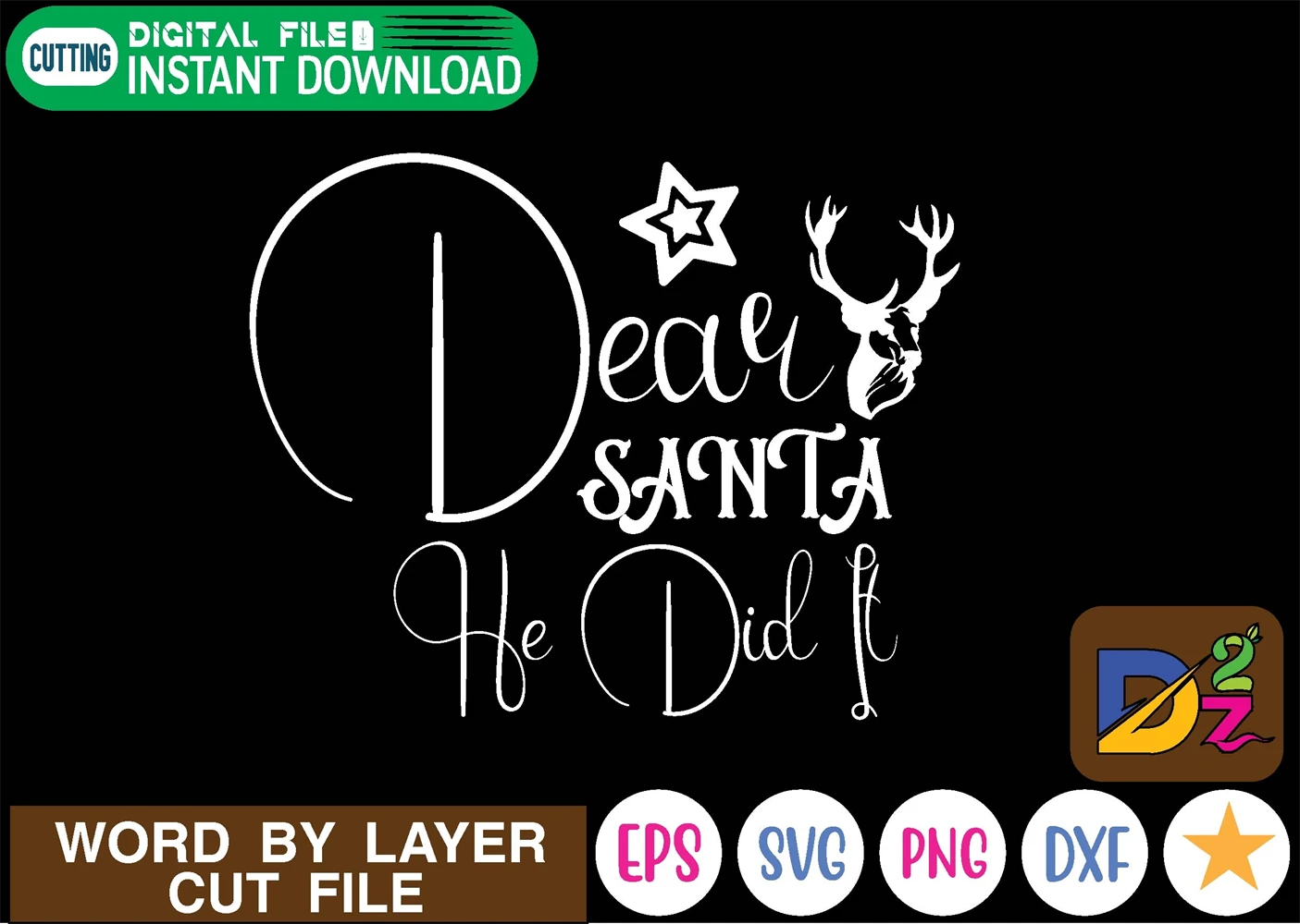 Dear Santa He Did It t shirt design This is an instant download cutting file compatible with many different cutting software/machines like cricut Silhouette