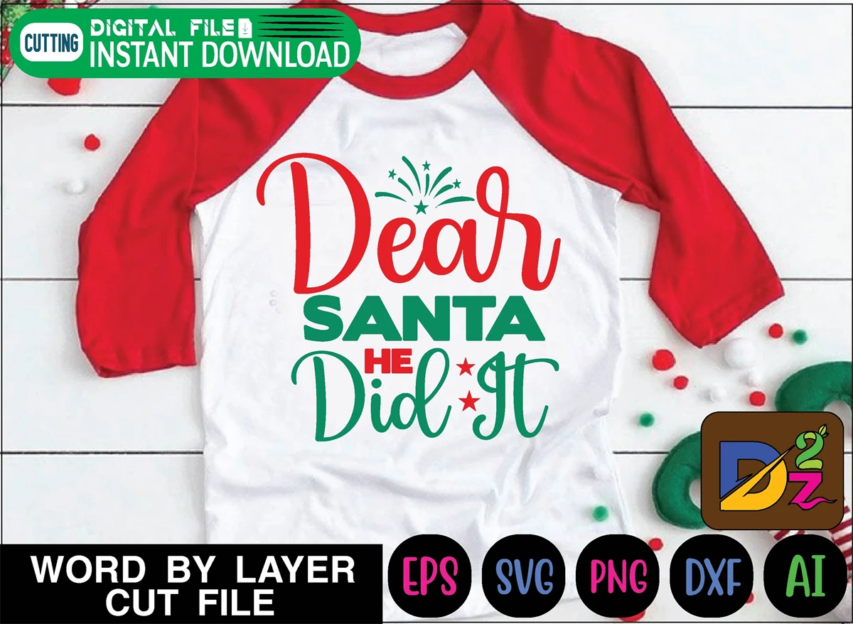 Dear Santa He Did It t shirt design This is an instant download cutting file compatible with many different cutting software/machines like cricut Silhouette
