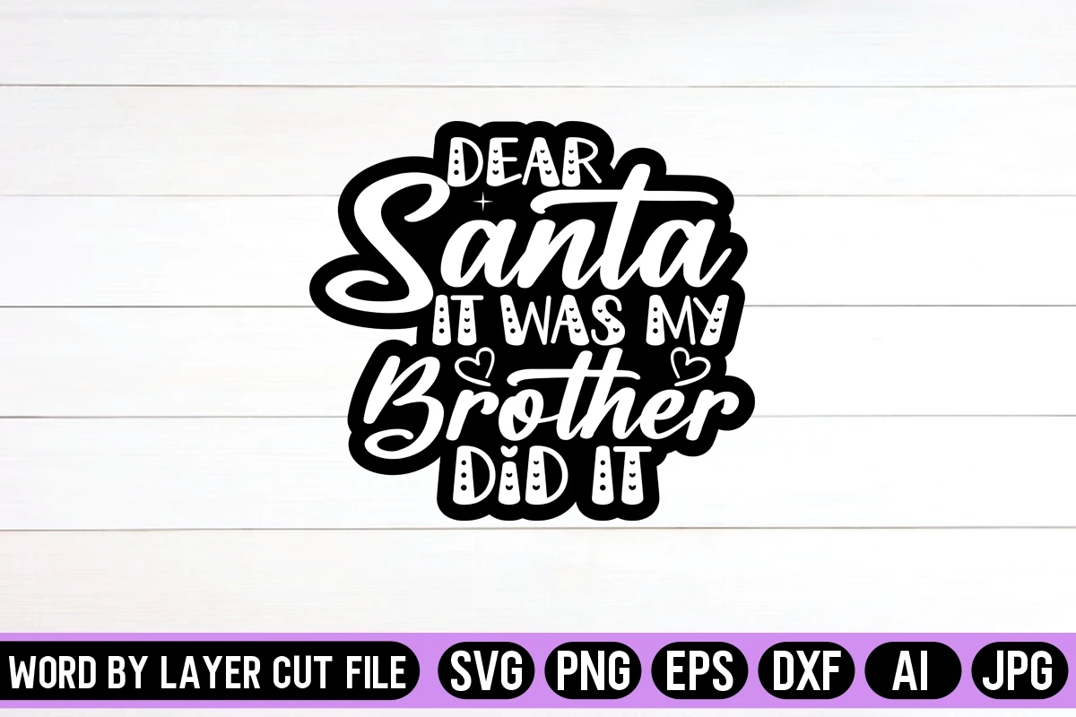 Dear Santa It Was My Brother Did It SVG Sticker Design
