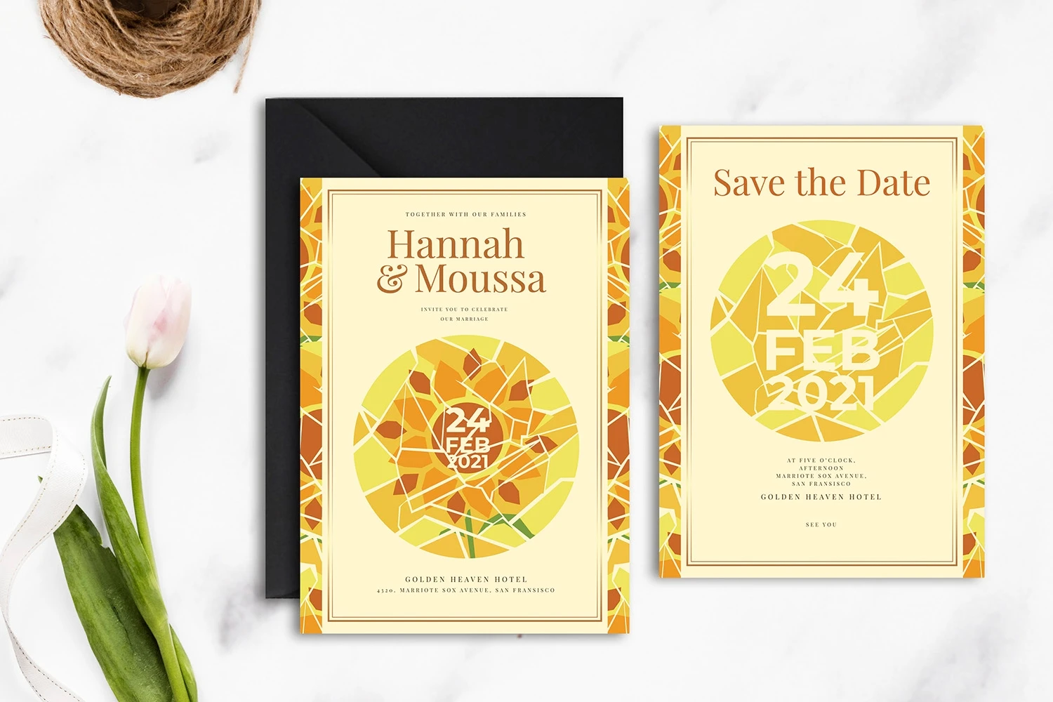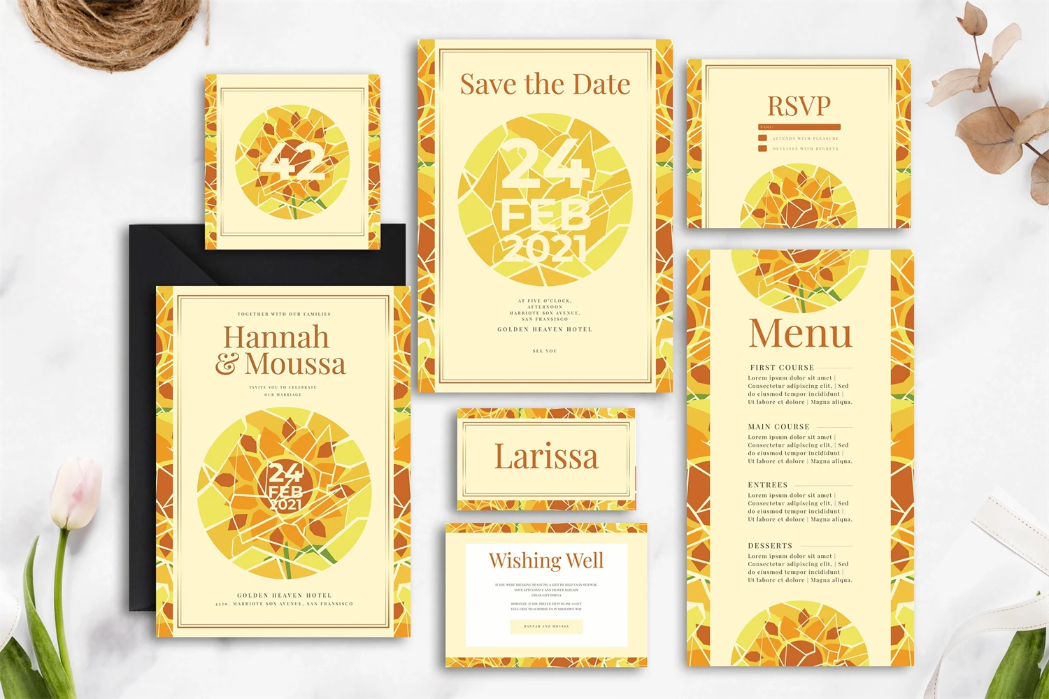 Decorative Sunflower - Wedding Invitation, is an invitation card leaflet, poster design, etc. Simple and very elegant You can easily edit & adjust each design because each layer such as text, images and shapes are well organized and highlighted.