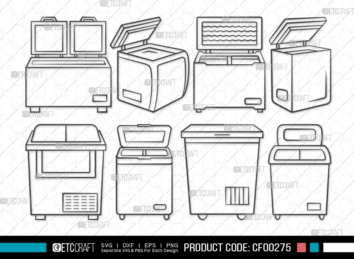 Elevate your creative projects with the Deep Refrigerator Outline Fridge Freezer SVG Cut File Bundle. It's a fantastic choice for graphic designers, artists, bloggers, small business owners, and anyone who values a sleek and modern digital appearance. Start creating your clean and sophisticated designs today!