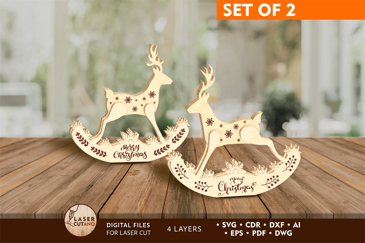 Deer Christmas Digital multilayer layout files are specially prepared for the laser cut, CNC router machine and other cutting machines.