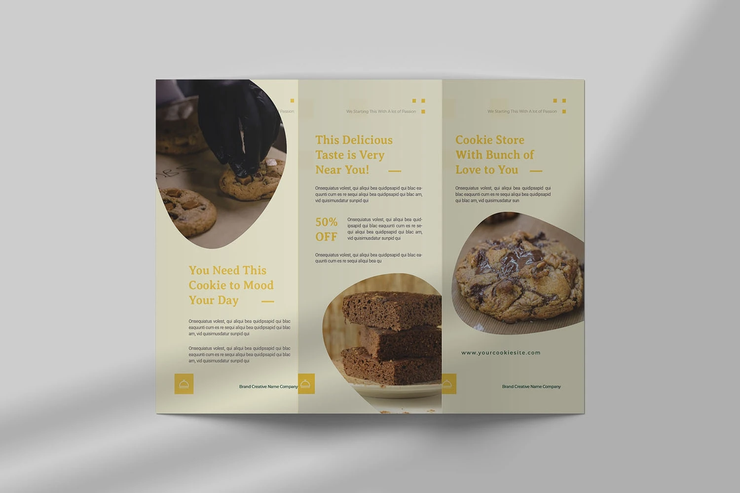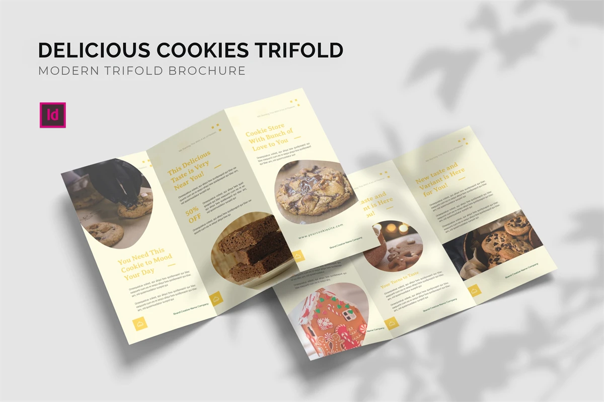 Delicious Cookies - Trifold Brochure We present this Trifold Brochure for you, simple, very elegant and professional and this Trifold Brochure is suitable for all types of your business,company or corporate, made with adobe inDesign (indd), very easy to customize, Hope you Like it dont forget to rate, Thanks You.