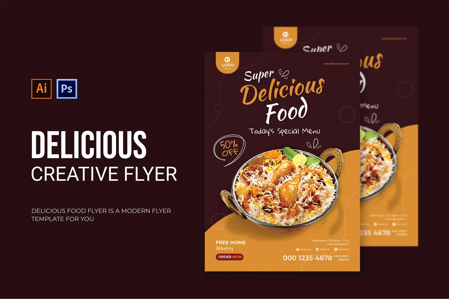 Delicious Food - Flyer. This Flyer template is designed for your company's business needs. very clean and elegant, and also easily edited and adjusted to your liking