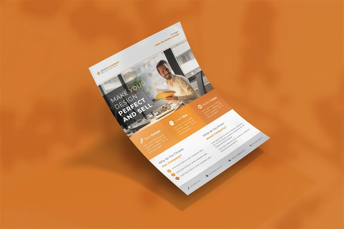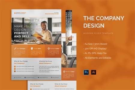 Design Company - Flyer. This Flyer template is designed for your company's business needs. very clean and elegant, and also easily edited and adjusted to your liking
