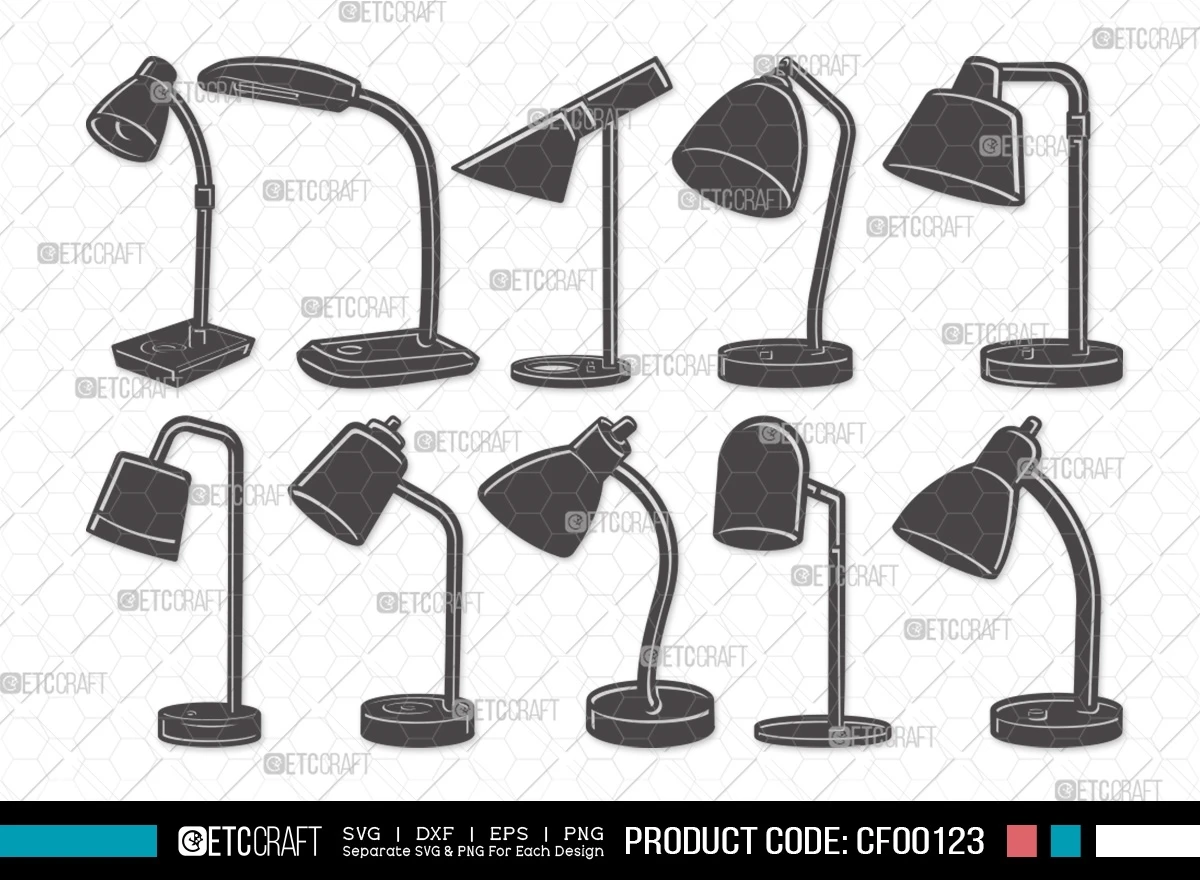 Brighten up your creative projects with our Desk Lamp Silhouette Table Reading Architect Lamp SVG Cut File Bundle. This collection showcases finely crafted lamp silhouettes, featuring desk lamps, table lamps, reading lamps, and architect lamps. Perfect for DIY enthusiasts and design enthusiasts, this bundle offers a plethora of options to illuminate your designs with a touch of elegance and functionality.